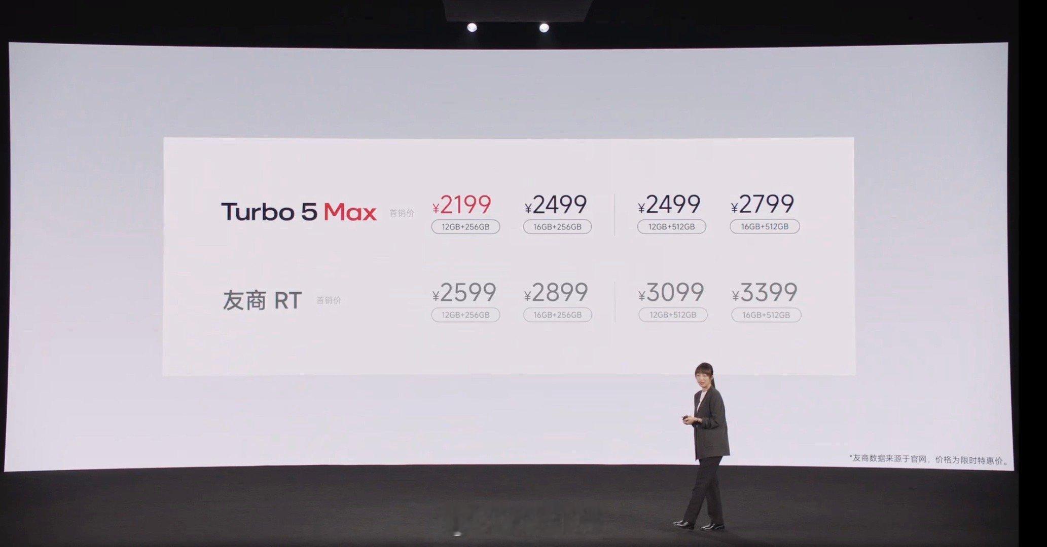 红米Turbo5发布会Redmi Turbo 5 Max正式发布,2199元起售首发售价如下:12GB+256GB 2199元16GB+256GB 2499元12GB+512GB 2499元16GB+512GB 2799元这价格很给力了,真是杀疯了,还有10亿内存补贴。