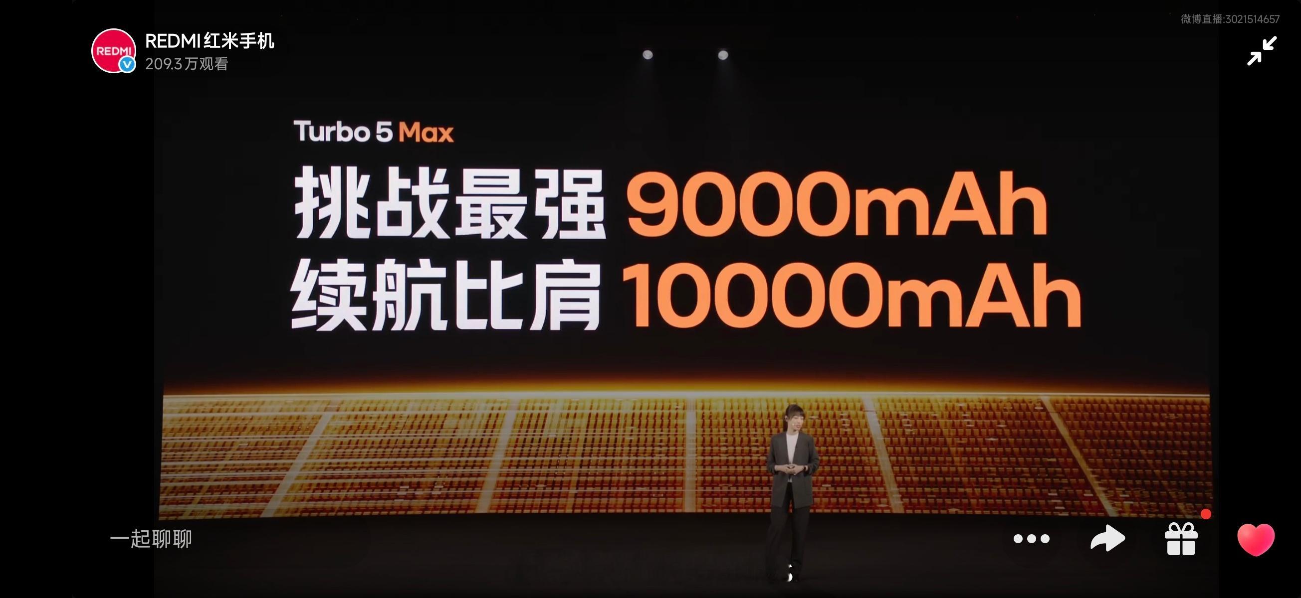 Turbo5 Max给了9000mAh的大电池,不仅容量大,软件优化也好,所以能做到更长的续航时间,反正给我测试的也挺难熬。另外一点,天玑9500s的游戏能效表现还不错,功耗低,相较于带风扇机型反而帧率更稳。老魏说风扇声音很大,情绪价值很足,但估计是项目太赶没优化好红米Turbo5发布会