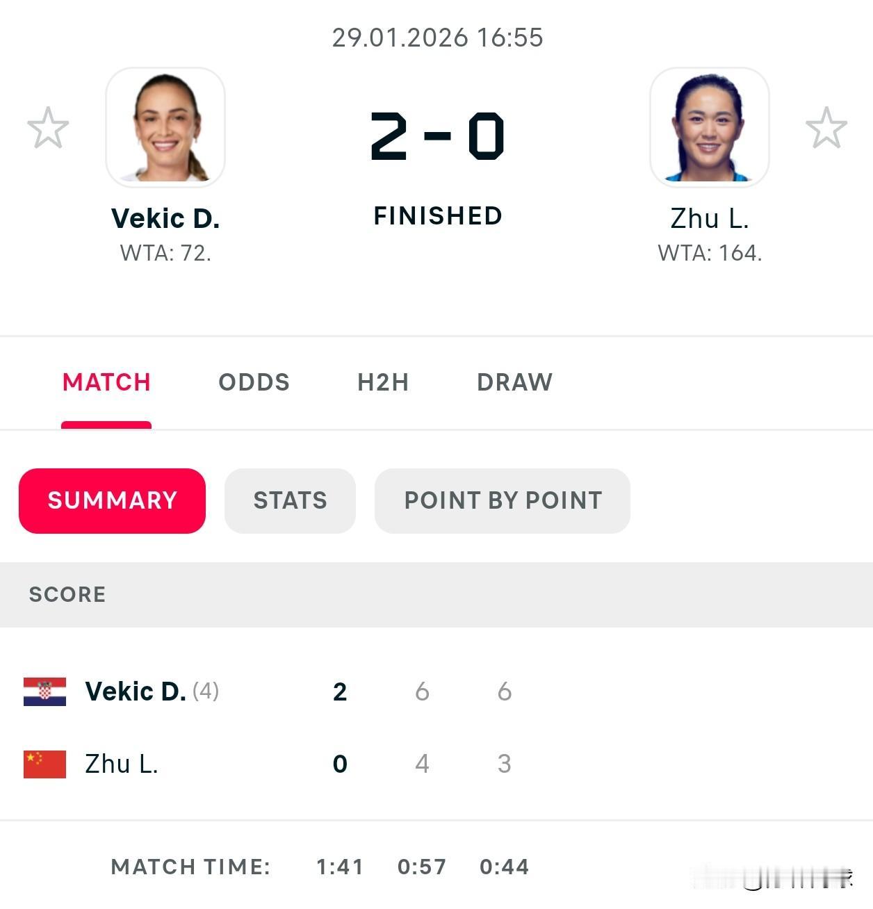 WTA125马尼拉 🇨🇳朱琳4-6/3-6维基奇 三连败对方。 无缘半决赛。