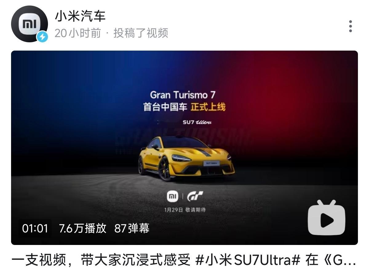 小米SU7 Ultra今日登陆GT7,成该系列首款中国品牌车型,打破欧美日系车垄断格局!实车纽北刷出最速量产电动车纪录,游戏里1:1复刻硬核性能,1548马力三电机的极致操控完美还原。这不仅是游戏更新,更是中国智造在国际性能车领域的硬核出圈!