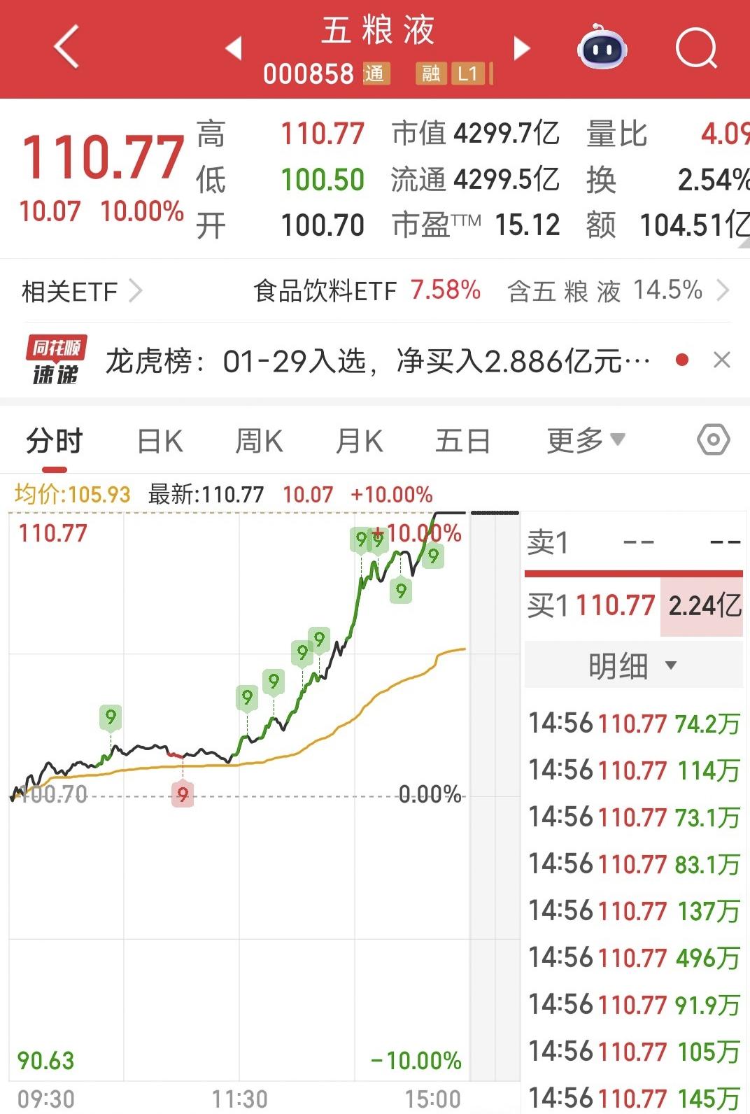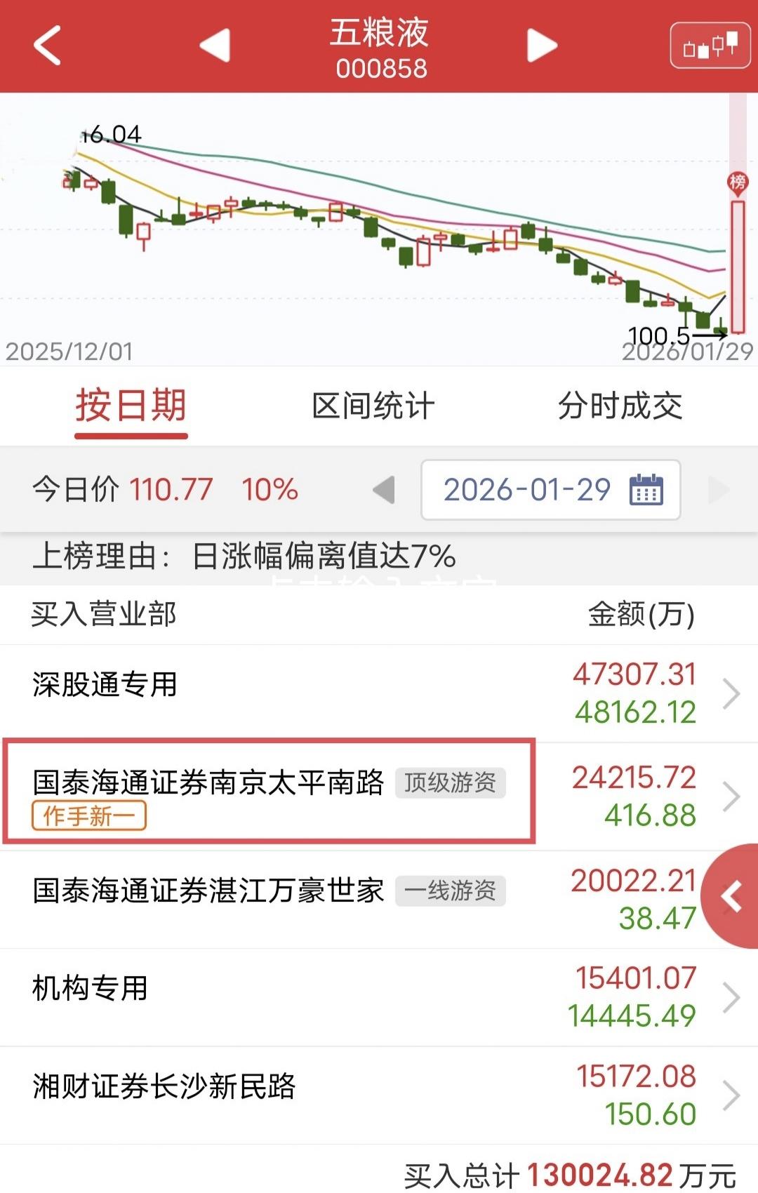 作手新一爆买2.4亿: 今天白酒突然爆发涨停潮,五粮液一柱擎天,一阳穿了十几阴,爆量到104.5亿。 盘后龙虎榜显示,作手新一爆买2.4个亿。 很少看到新一买关于酒的题材,不会是喝多了吧! 游资