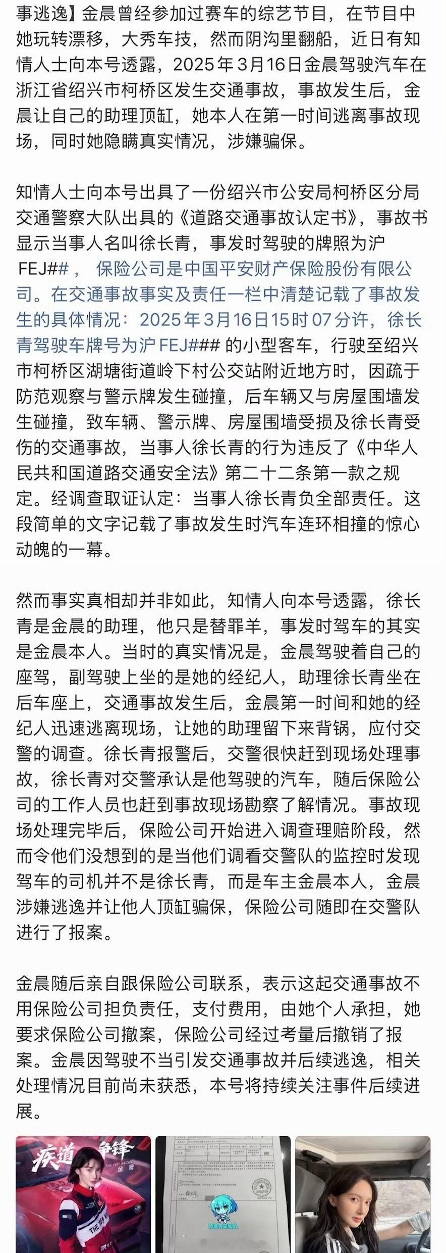 金晨被曝肇事逃逸当地村民称有印象如果属实,本来的事儿自己处理好也没那么严重,现