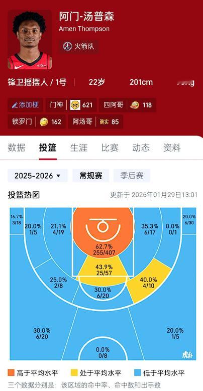 阿门-汤普森本赛季的投篮热图,完全没投篮啊,下一个席梦思?