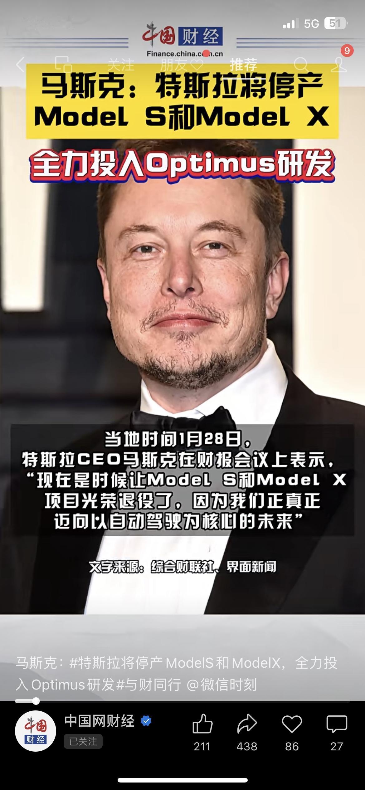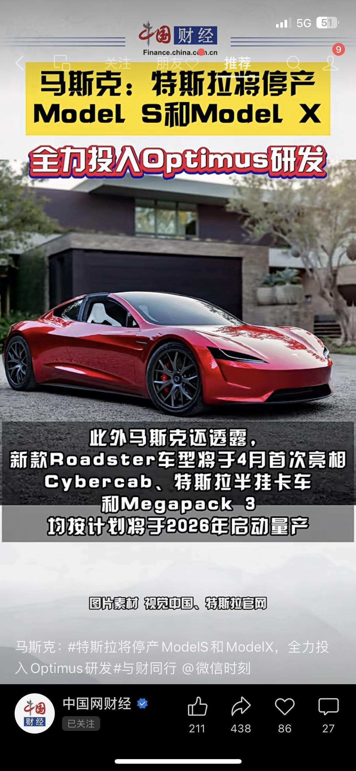 特斯拉直接停产Model S/X!马斯克梭哈机器人 马斯克官宣停掉Model S/X生产线,加州工厂全改造Optimus机器人,还说Cybercab今年量产、Roadster4月亮相。汽车业务直接放一边,这波直接押上全部身家赌机器人赛道!车企不造车造机器人,马斯克这步棋走得太野了。 你觉得马斯克梭哈机器人是神操作,还是瞎折腾? 特斯拉 马斯克 Optimus机器人