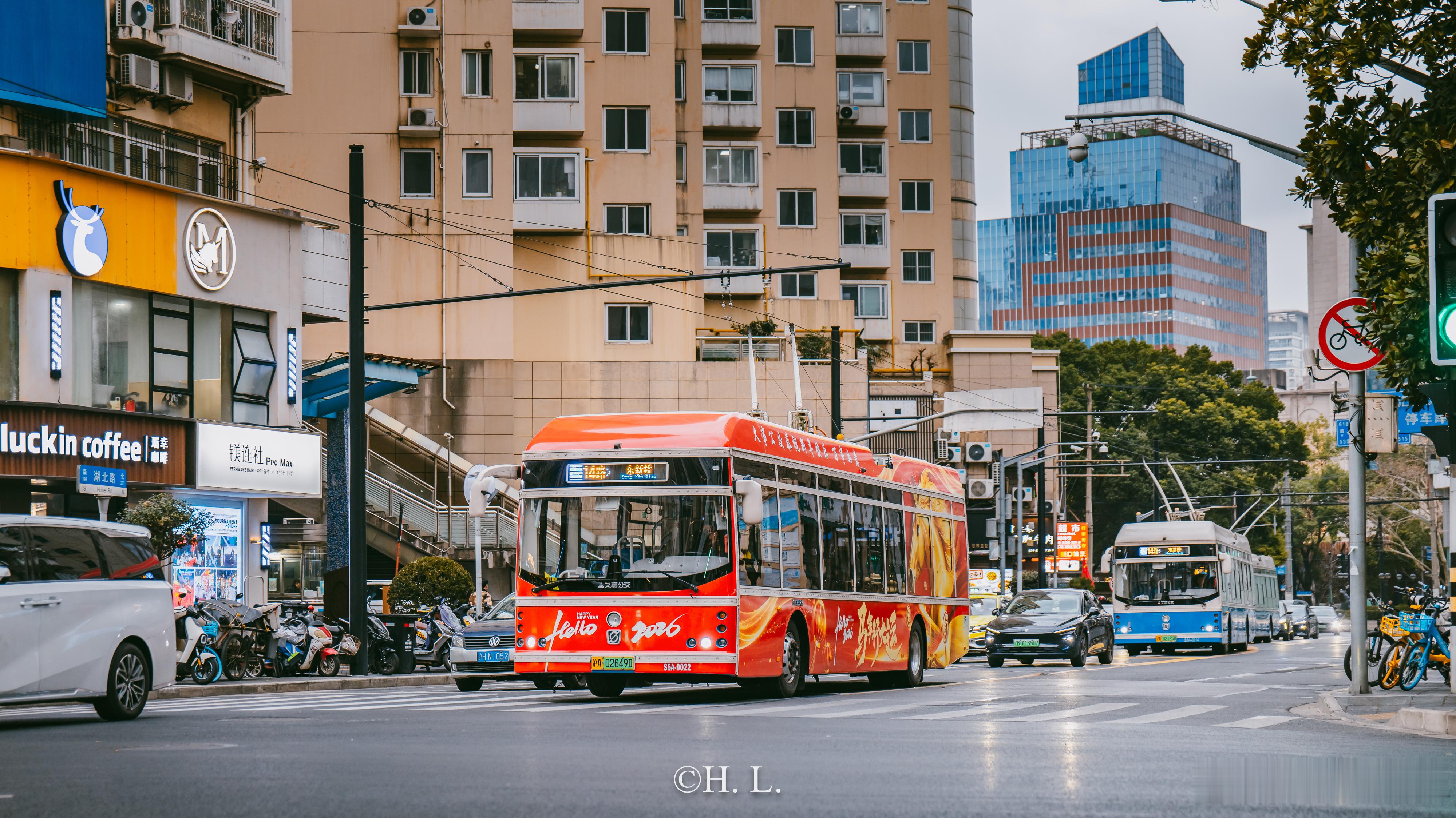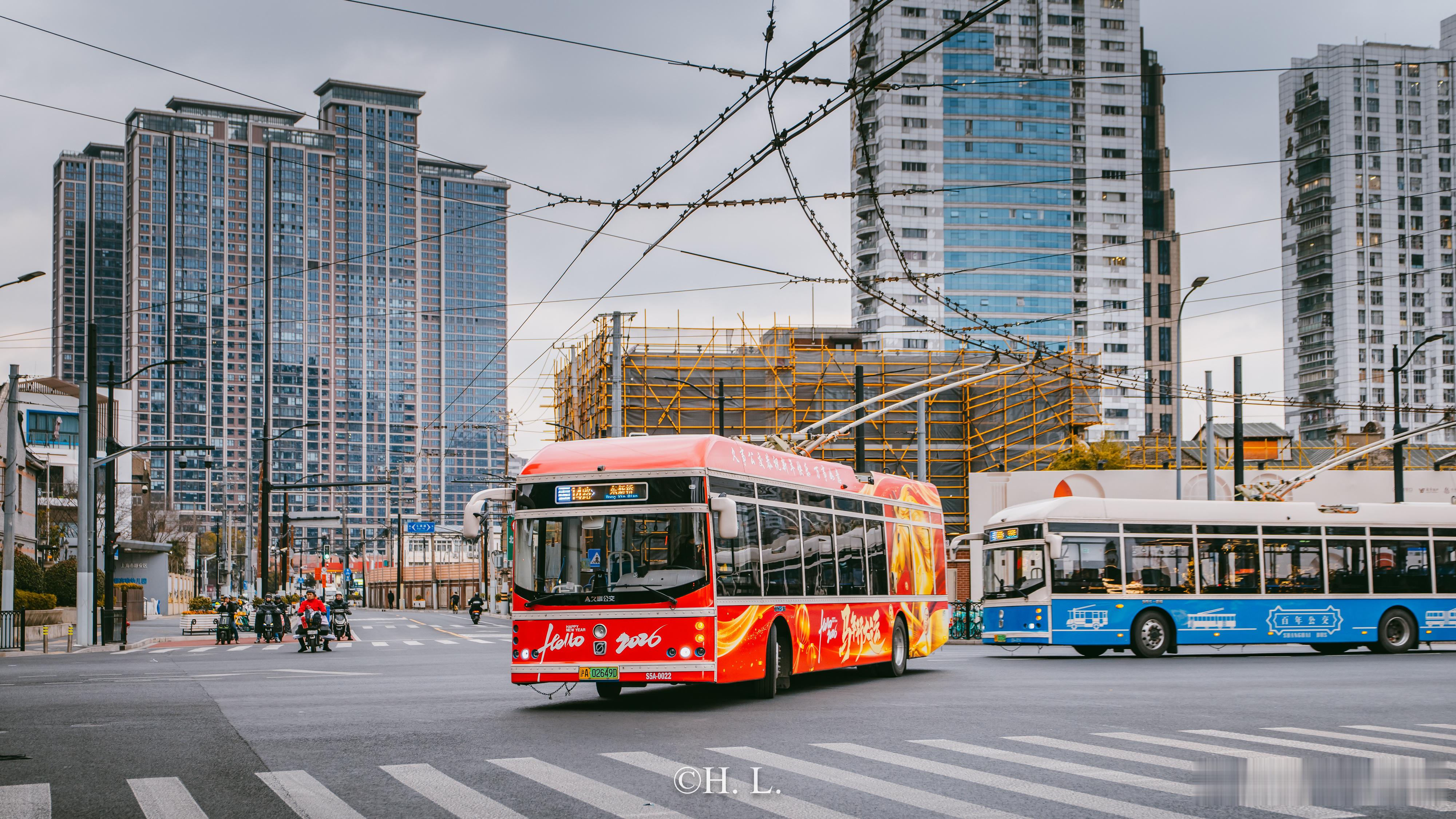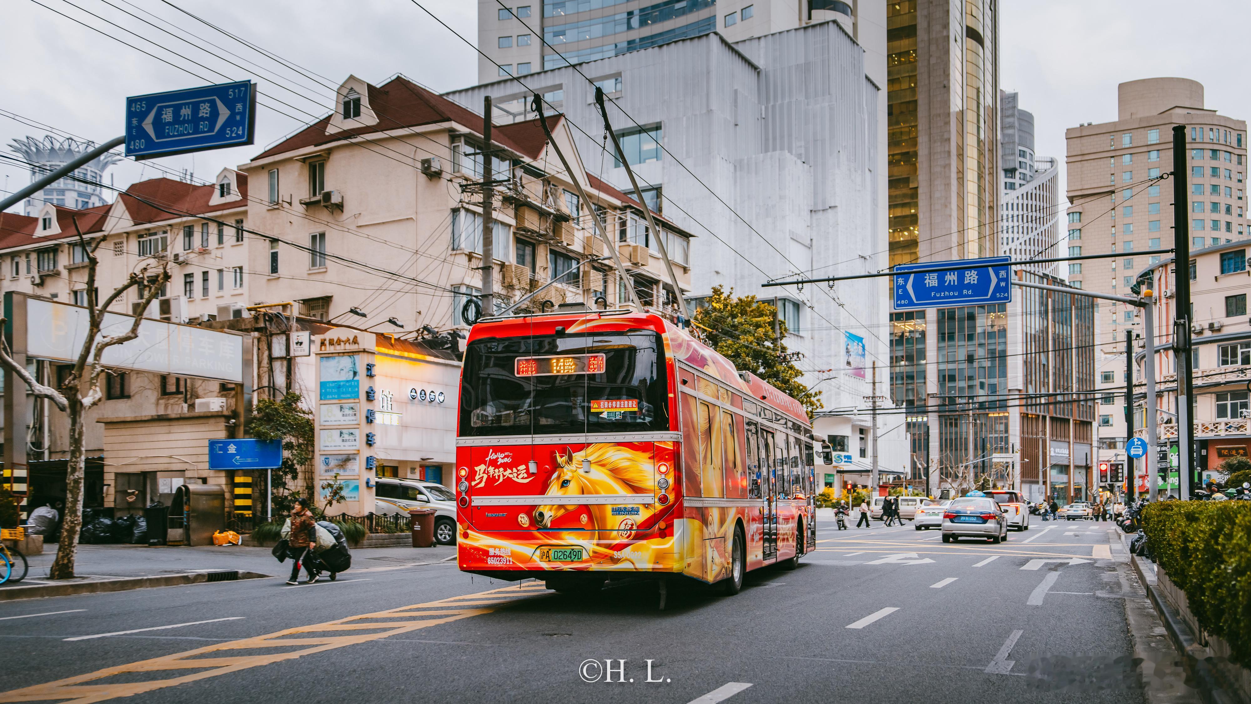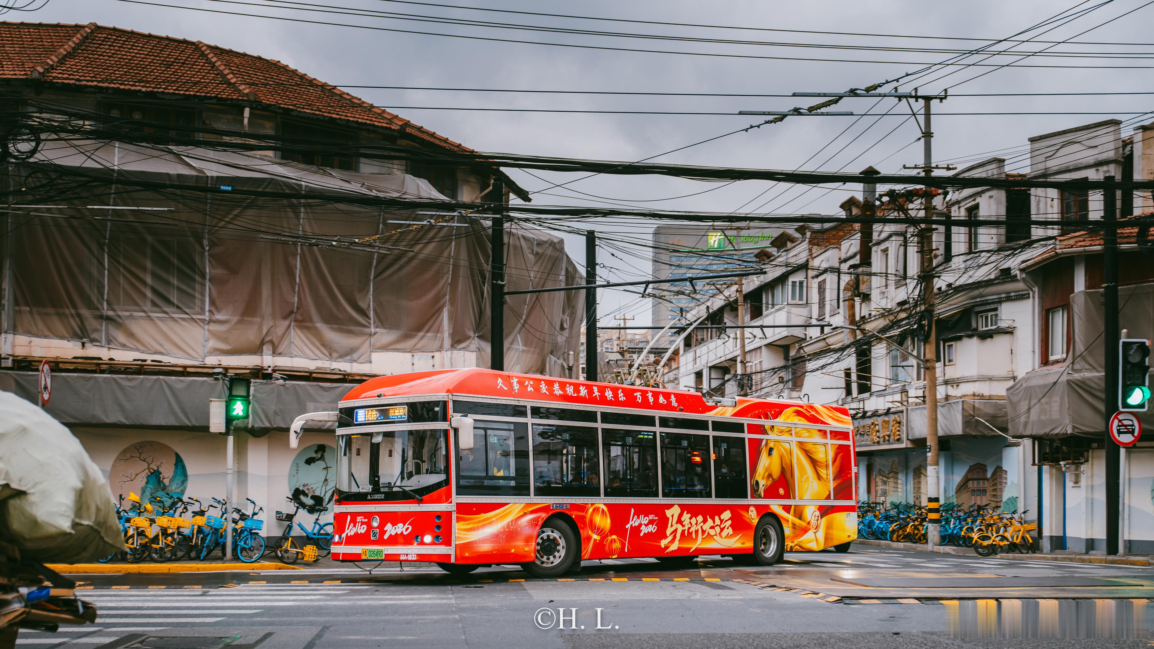 新年彩车如愿上线无轨电车14路。马年大吉。