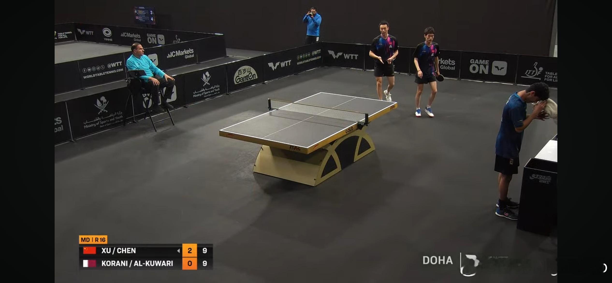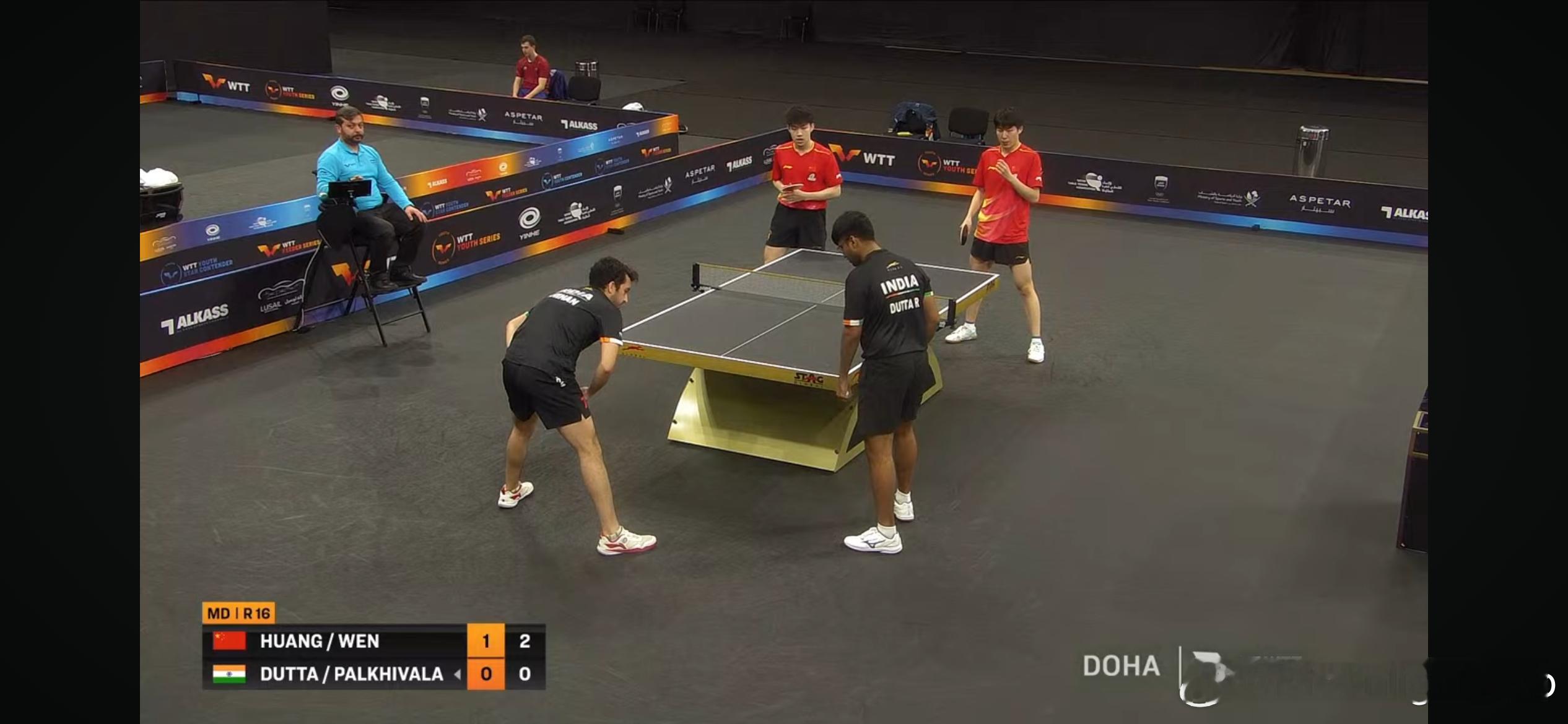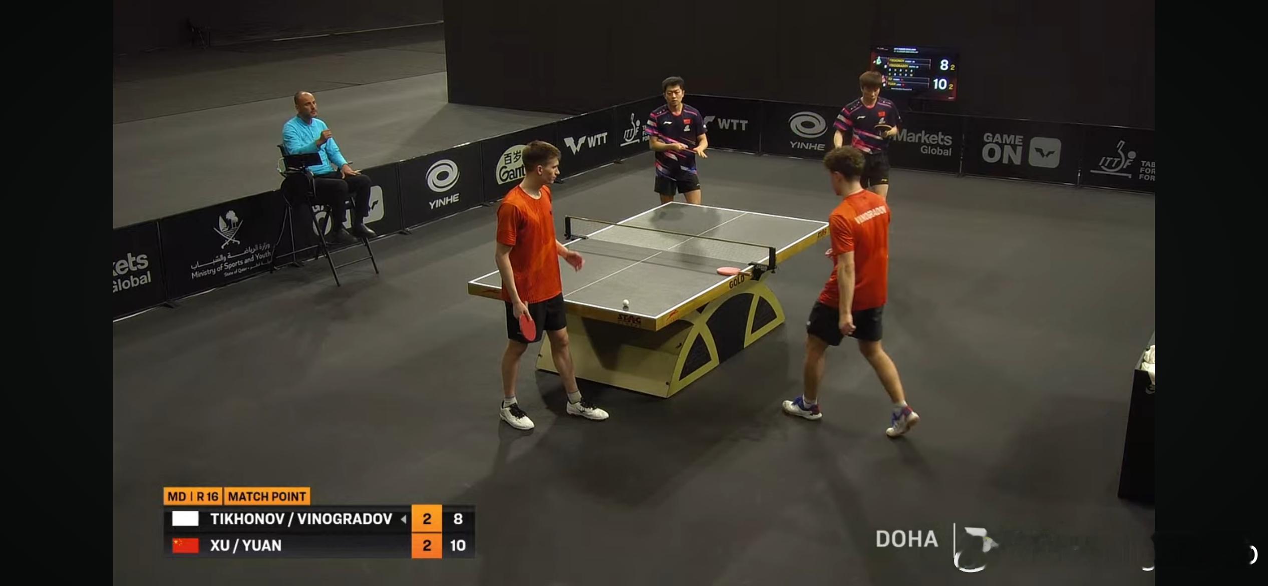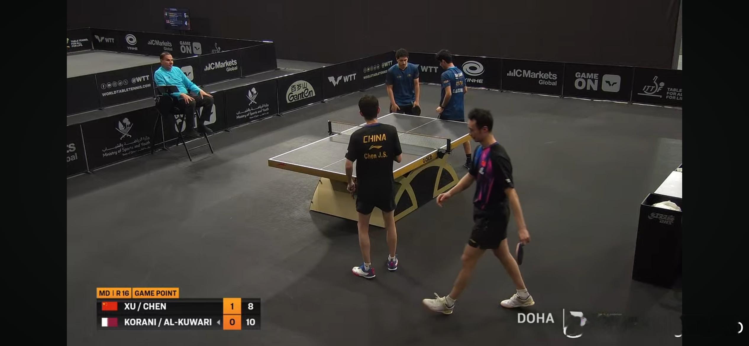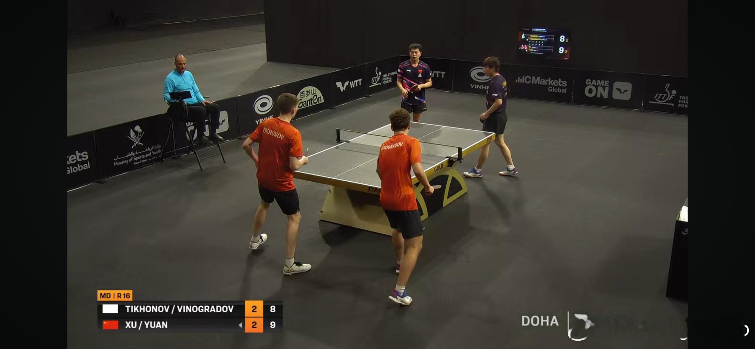 WTT支线赛多哈站2026 男双1/8决赛:🇨🇳徐海东/陈俊菘3比0科拉尼/库瓦里🇶🇦(11-8,13-11,11-9)🇨🇳黄友政/温瑞博3比0杜塔/帕尔基瓦拉🇮🇳(11-3,11-1,11-3)🇨🇳袁励岑/徐瑛彬3比2维诺格拉多/季霍诺夫(AIN)(11-6,8-11,11-8,9-11,11-8)