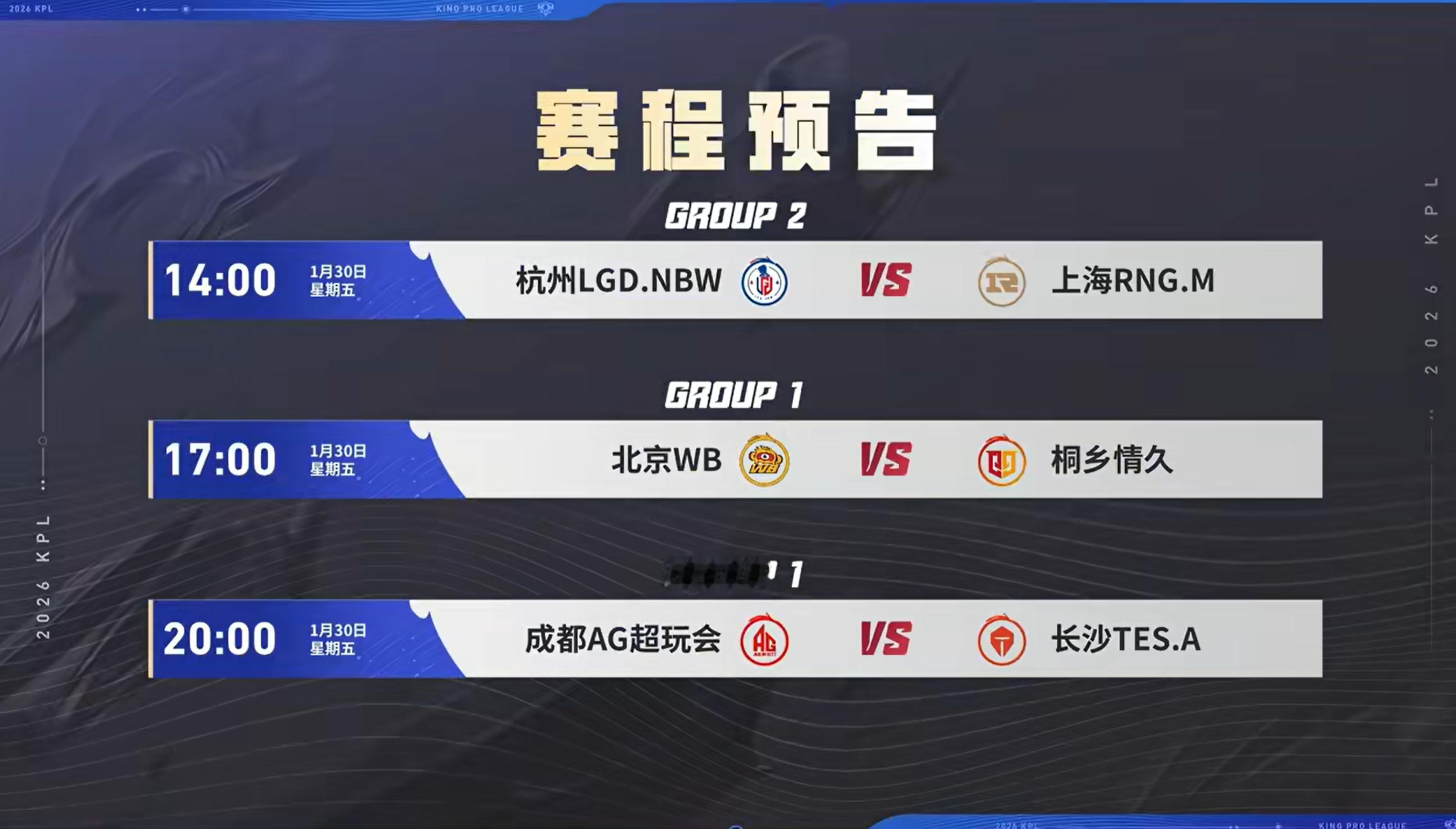 2026KPL春季赛常规赛第一轮赛程 售票时间:1月7日中午12:00 (上海K