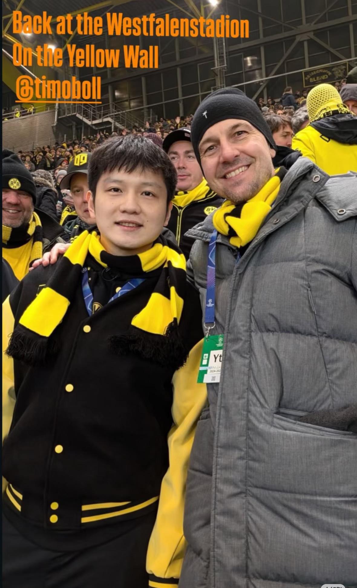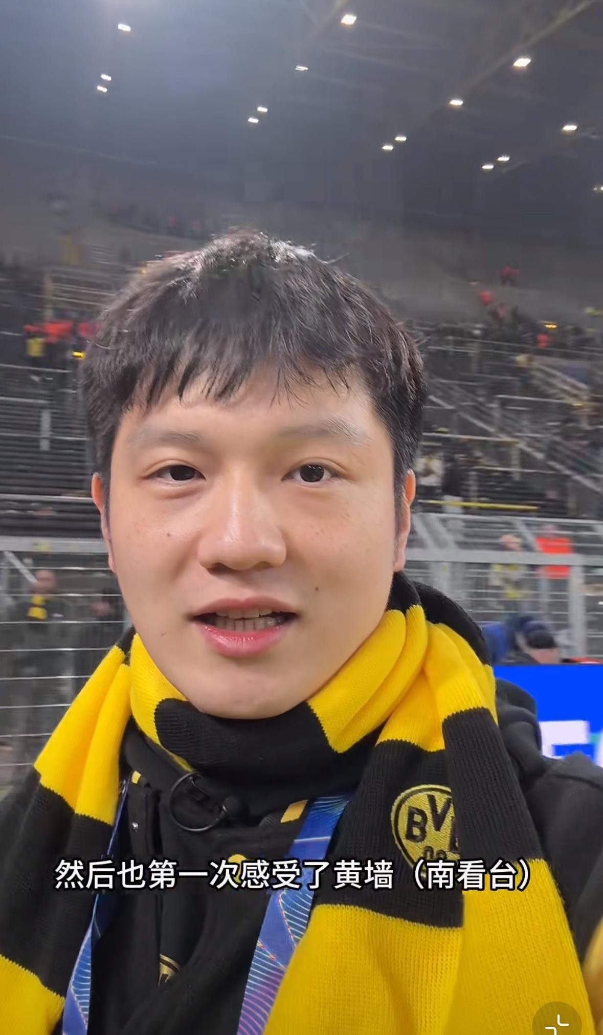 时隔好久终于看到樊振东自拍:“非常开心今天来到多特蒙德的主场, 然后也第一次感受到了黄墙( 南看台), 虽然比赛的结果可能不是如所有球迷想象的,但我相信这是一 场非常精彩的比赛, 以后有机会我也相信, 我会再次回到这里, 见证他们的胜利✌️!” 感谢多特蒙德足球俱乐部, 时隔好久没有见到樊振东的自拍了, 横已经狠狠比东哥上次看球, 进步了两个球,横想让樊振东 见证胜利✌️,一定会继续加油。 不得不说,横的衣服配色 挺萌的, 黑黄配色,很适合樊振东, 就说横下一场比赛能不能赢一次, 让东哥见证一次?