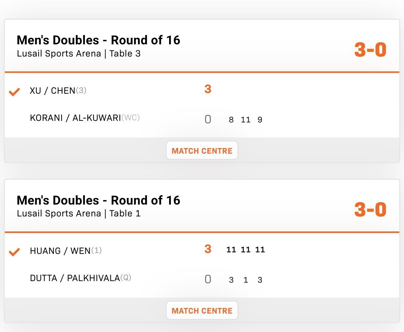2026wtt多哈支线赛男子双打16-8黄友政/温瑞博3-0杜塔/什汗徐海东/陈俊菘3-0柯兰尼/苏尔坦