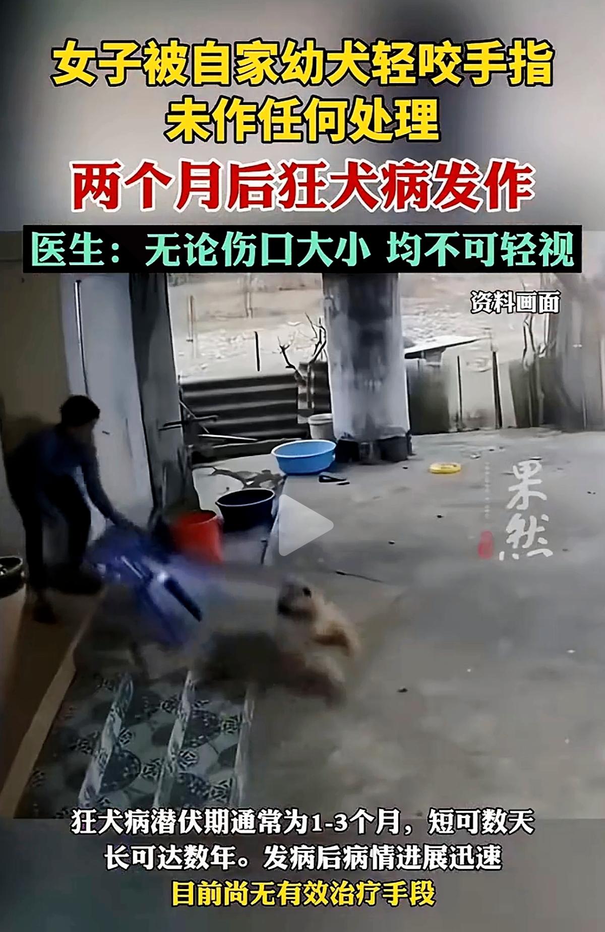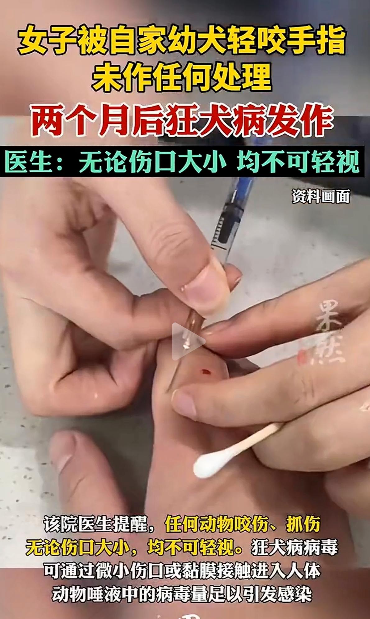 刷到女子被自家狗轻咬2个月后狂犬病发作的消息,后背瞬间冒冷汗!这哪里是小伤口,分明是藏着致命风险的“隐形炸弹”。 很多人都有个致命误区:“自家狗健康,咬了没事”“伤口小没出血,不用打疫苗”。但狂犬病病死率几乎100%,潜伏期长短不一,动物外观健康不代表不携带病毒。哪怕是轻微咬伤,只要皮肤破损,就属于Ⅱ级暴露,必须及时接种疫苗。 爱狗不是忽视风险的理由,对自己负责才是底线。被狗咬后别心存侥幸,先用肥皂水冲洗伤口15分钟,再按规范接种疫苗,这步绝不能省。 你身边有人被宠物咬伤后没及时处理吗?来聊聊你知道的安全常识吧!狂犬病