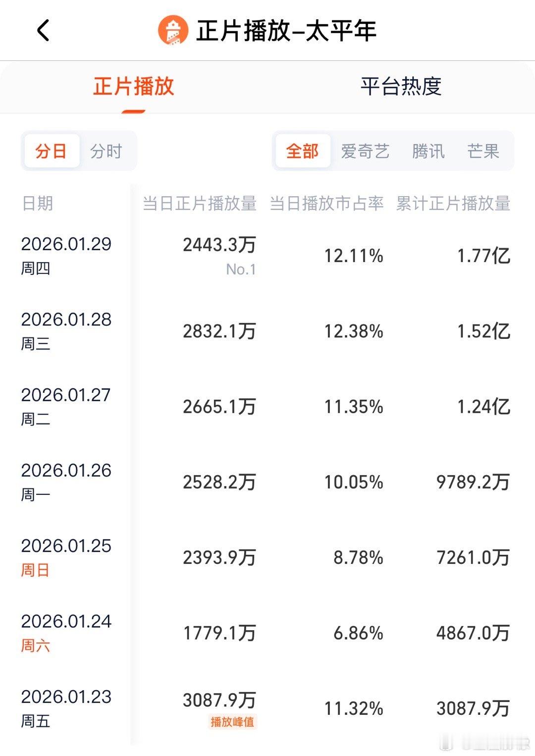 这就是开播前吹的响亮的历史大剧太平年 。播成这样你是不是觉得它完蛋了?我认为不是,没准明年它还能运作点小奖项你信不信。现在长剧市场,也就是这幅模样。开播前我就曾怀疑,我说这剧吹的非常浮于表面,没有任何关于剧情的东西,我刷到一些博文,全都是吹什么历史大剧。就你想正儿八经看一些关于这部剧到底讲了什么,都看不到。搜也搜不到什么。这是为什么?因为主演丝毫没有观众缘和热度,几位主演还都是一个公司的,这公司还特别能花里胡哨的营销。。但套路都是“躲在热度背后营销”。所以结局就是这样扑开一路扑走。你甚至都刷不到几个yxh发这部剧,是夸还是吐槽。都是一样。无人在意,无人问津。