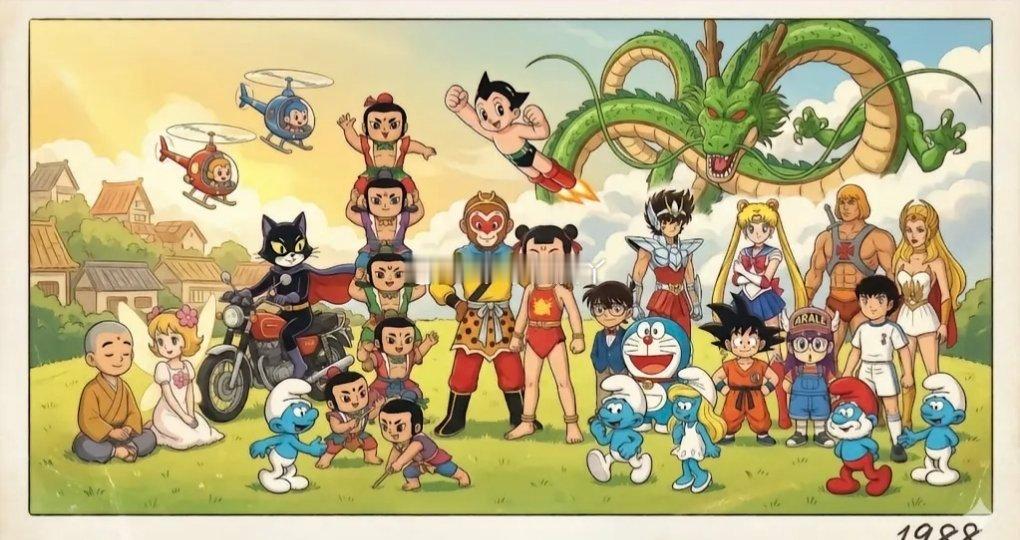 谁的童年DNA狠狠动了!这张动漫大合影直接把8090后的童年攒成了局:国漫顶流组里,黑猫警长骑着摩托守护森林,孙悟空金箍棒一抡就是英雄梦,哪吒踩着风火轮喊出“我命由我不由天”,葫芦娃兄弟团结救爷爷,舒克贝塔靠自己劳动闯世界,海尔兄弟穿着裤衩环游地球科普知识。铁臂阿童木用十万马力守护世界,哆啦A梦的四次元口袋装满幻想,龙珠神龙承载着我们的许愿梦,美少女战士一句“代表月亮消灭你”是女生最早的英雄梦。还有蓝精灵们在蘑菇村里和格格巫斗智斗勇,治愈了整个童年。
