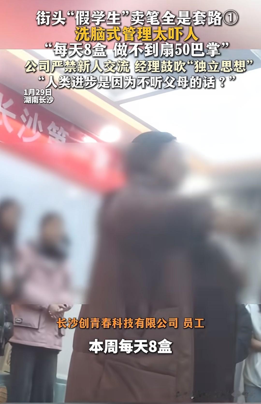 终于有媒体曝光了“假学生”卖笔的套路了,哪有什么大学生创业项目,哪有什么真学生,都是一群骗子忽悠着新人,天天给她们洗脑罢了! 这些诈骗公司打着招前台的幌子,实际上是到处招人卖笔,试用期七天,过了七天一分钱都没有,卖不出笔也没工资,专门骗暑假工和刚毕业的学生,很多涉世未深的人踩坑。 而且这些笔的价格也不便宜,质量也一般,基本暴利,售价基本十几块,几十块,但拿货也就几块钱,妥妥的暴利。有人好奇,什么人会买,这么贵能卖出去?进来的新人都要通过各种手段将笔卖出去,如果成功了,后面会接触到保健品等更加暴利的东西,而那些“销冠”也是包装出来的,就是演给新人看的。 这些公司的目标客户主要就是那些爱心泛滥的人,以为大学生创业不容易,就花巨款拿下了,哪怕自己没有这个需求。它们的产品有很多,利润都很低,但售价都很高,都是让新人硬着头皮去卖。这种公司跟传销没什么区别,卖东西只是幌子,能成功加入的就需要发展下线了,说白了还是靠人头挣钱。