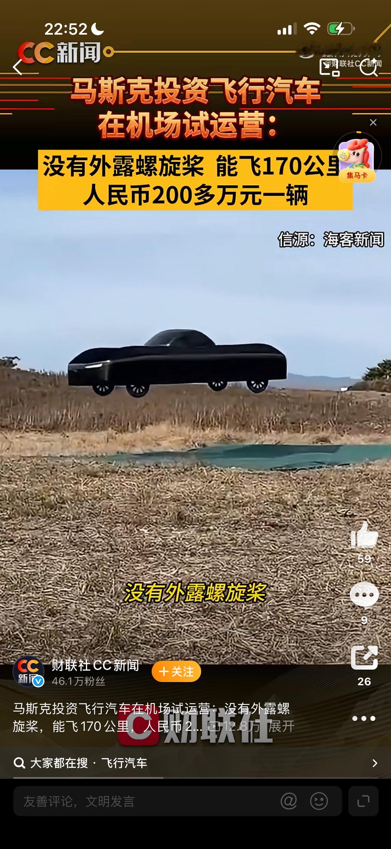 以后出门可以打飞的了马斯克投资飞行汽车在机场试运营:没有外露螺旋桨,能飞170公里,人民币200多万元一辆。