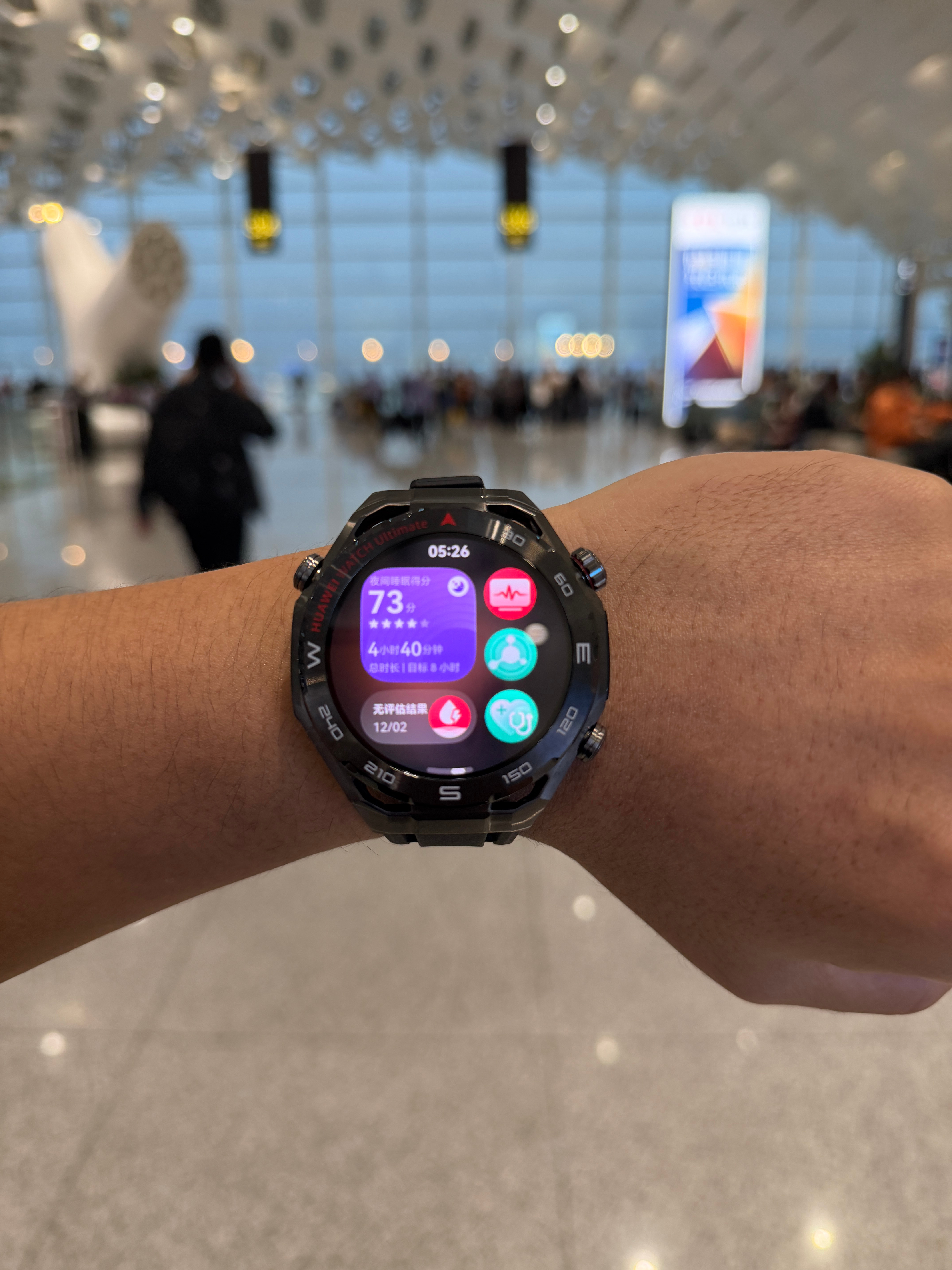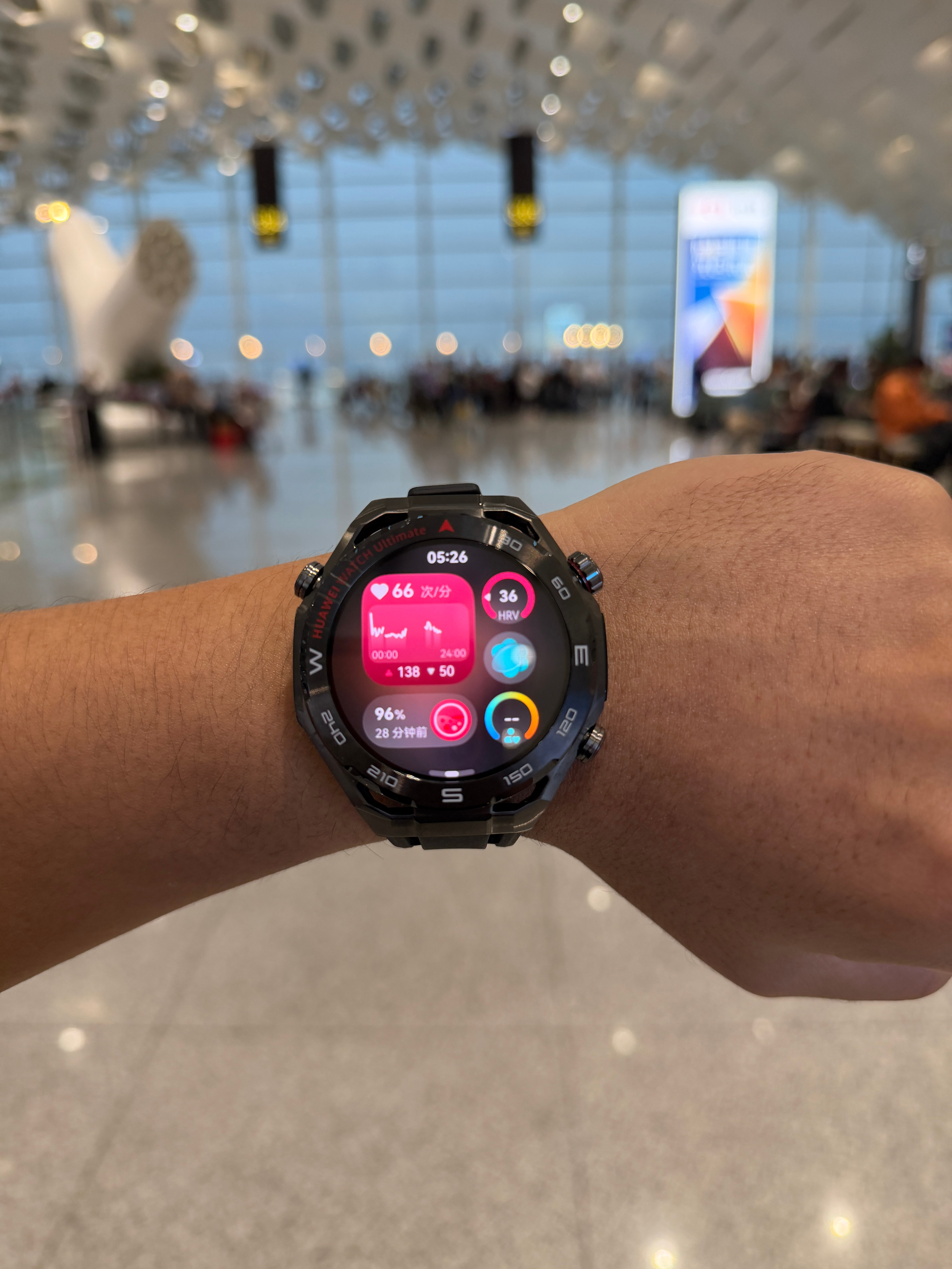 这次出差,华为 Ultimate 2 的值机动态提醒真的帮了大忙 值机柜台、登机口变更、甚至行李转盘号,抬手即见,不用在候机厅反复掏手机核对行程,这种“松弛感”确实是顶级旗舰给的最喜欢它和手机的联动 手机放包里听歌,切歌、调音量直接在表盘滑轮完成;高强度会议期间,瞄一眼心率动态,看它提醒我该“深呼吸”时,才发现节奏确实快了点 是工具,更是懂你的生活搭子HUAWEI WATCH Ultimate 非凡探索