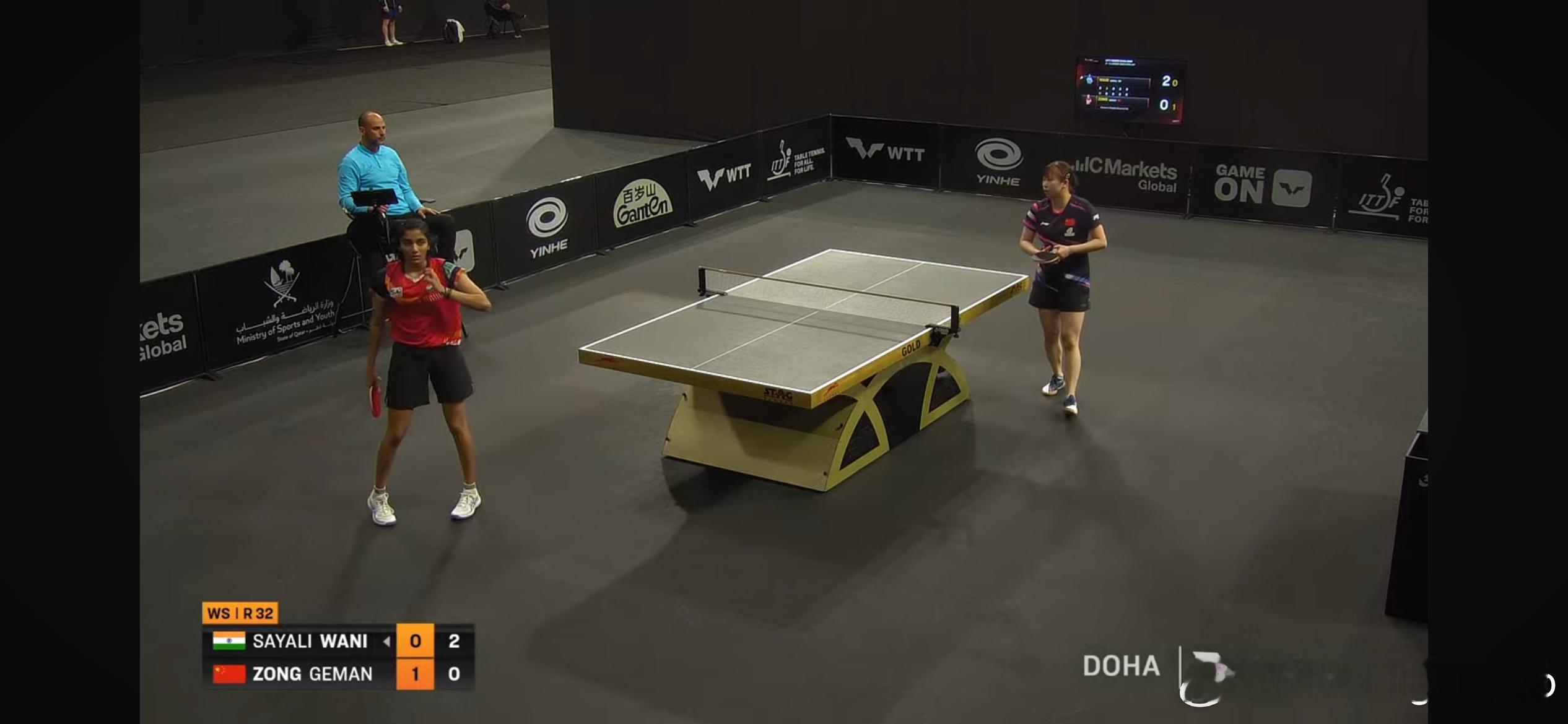 WTT支线赛多哈站2026 女单1/16决赛:🇨🇳纵歌曼2比3萨亚利·瓦尼🇮🇳(11-8,11-13,8-11,12-10,8-11)