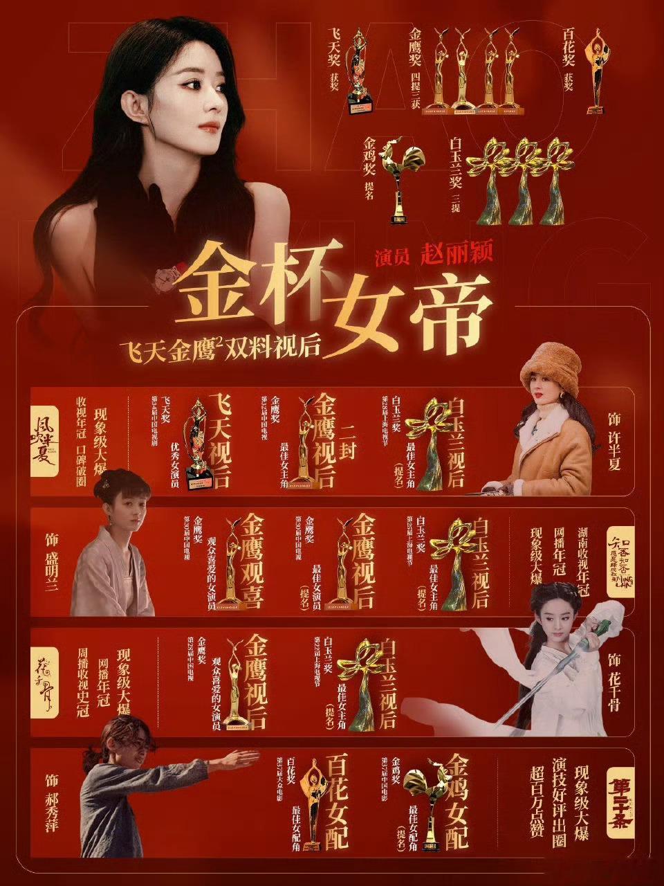 五金杯女帝赵丽颖的飞天视后+二封金鹰视后的含金量好高啊,这才是电视剧三大奖噢