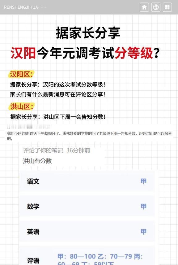 汉阳元调等级已出?洪山区下周一出分数? 据家长分享:汉阳元调等级已出?洪山区下周一出分数? 最新元调考完之后家长们众说纷纭!小编收集到一些家长们分享的信息! 家长们有最新的消息可以打在评论区和家长们共享! 小升初 择校 学区房 估分 分数 升学规划