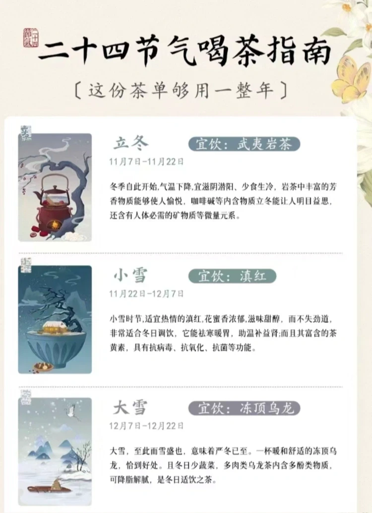 茶知识 喝茶的讲究 传播茶文化和茶知识 秋冬季要合理喝茶 传统茶文化 二十四节气 了解茶历史 冬天喝的茶 茶文化传播者 茶叶冲泡方式