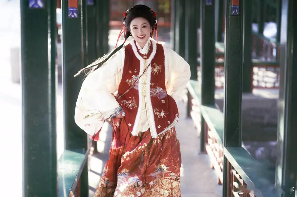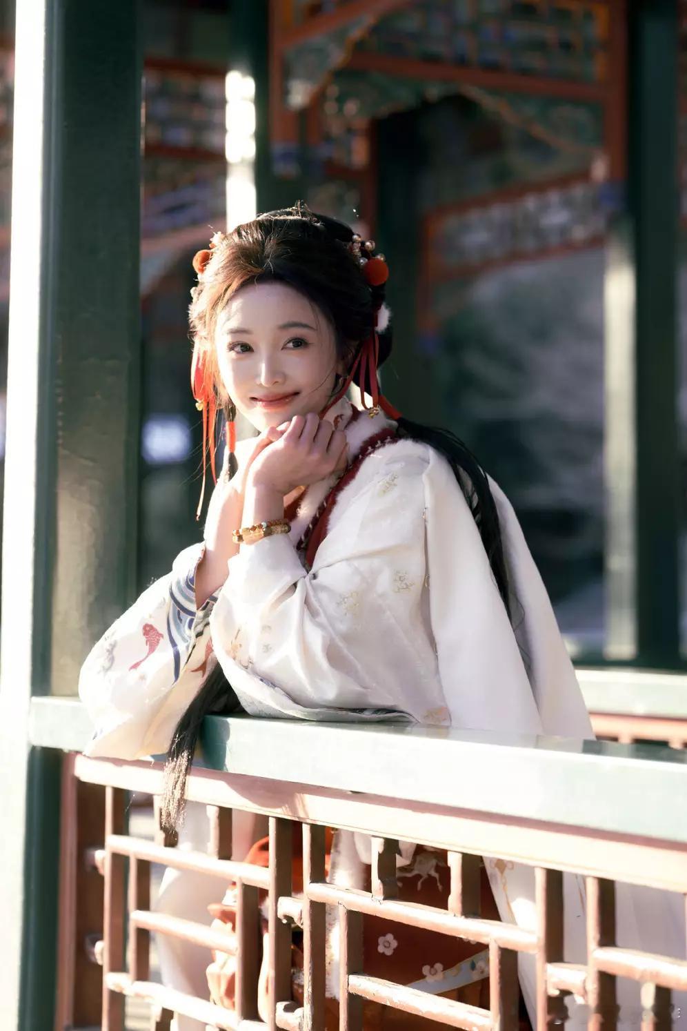青青娱乐吴宣仪一袭红色汉服娇俏又喜庆漫步园林古典雅致