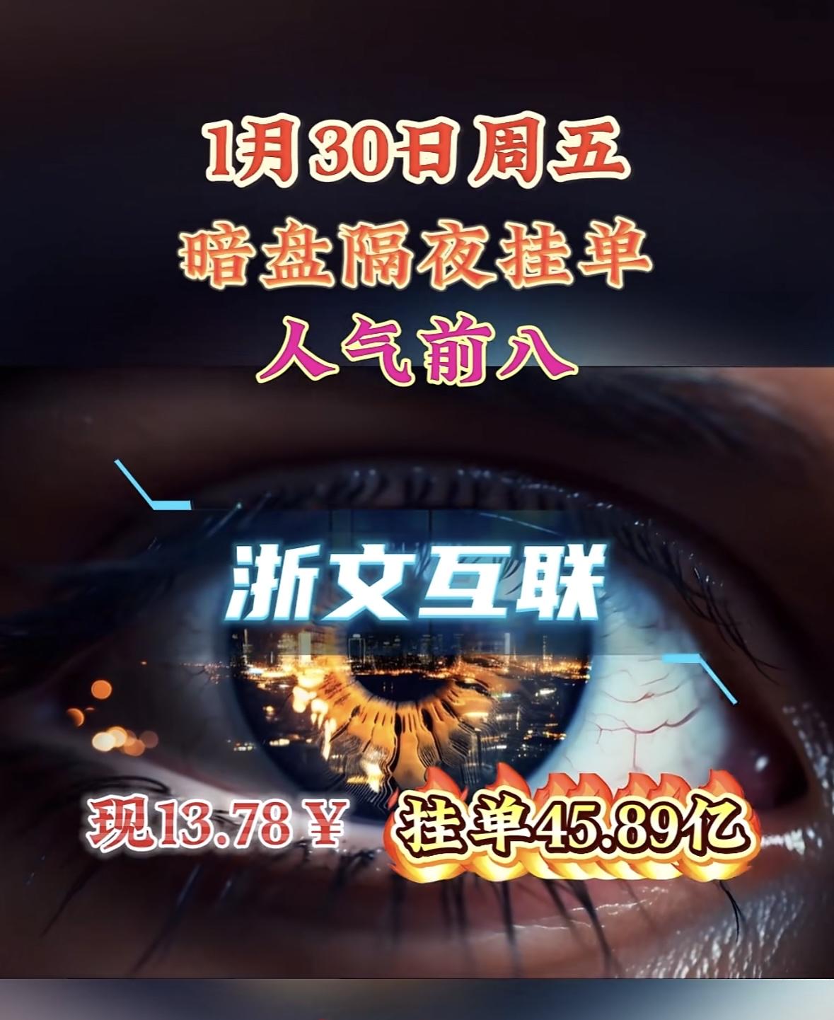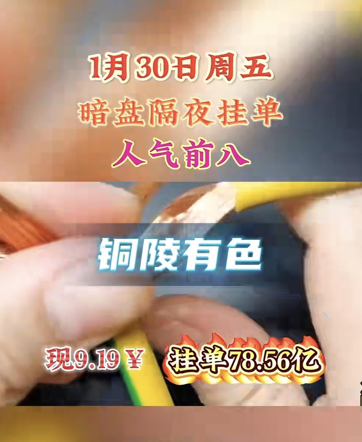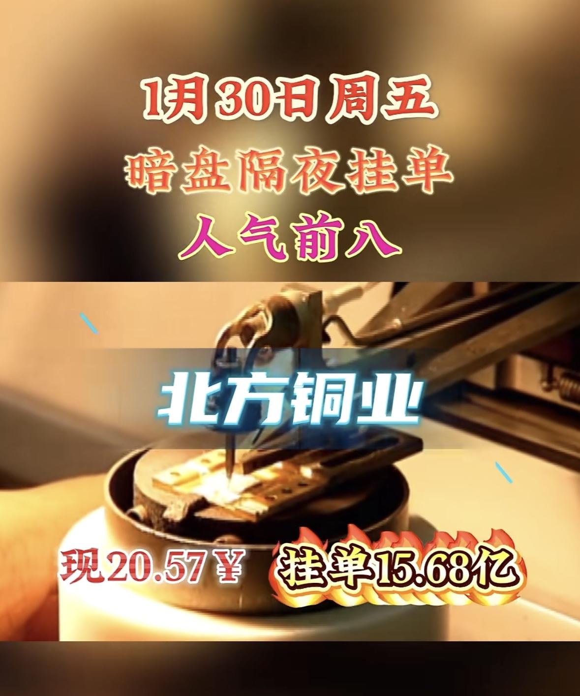 1月30日暗盘隔夜挂单,人气前八,白银有色,现价15.19¥,挂单96.38亿! 白银有色暗盘交易火爆,人气高涨,挂单量惊人,市场关注度飙升。 白银有色暗盘交易火热,人气高涨,挂单量庞大,市场关注度飙升。