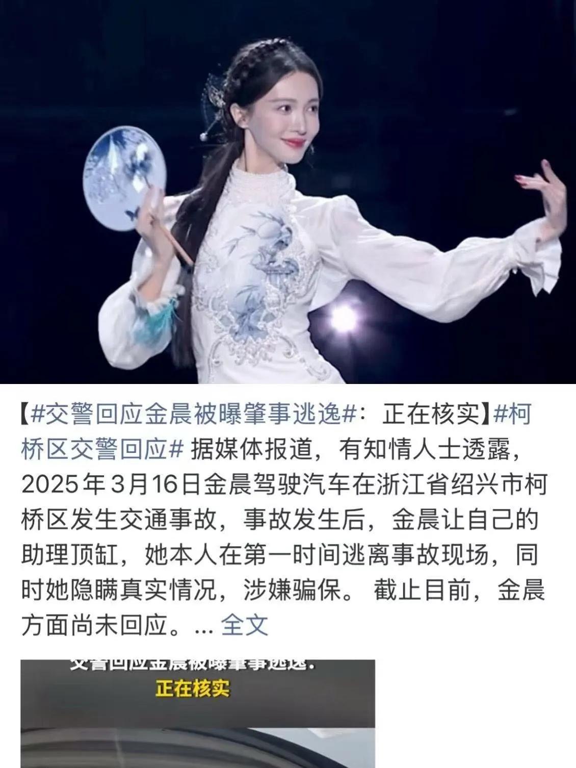 金晨又没撞到人,她跑啥呀? 金晨被曝曾在绍兴涉嫌交通肇事让助理顶包,引发网友热