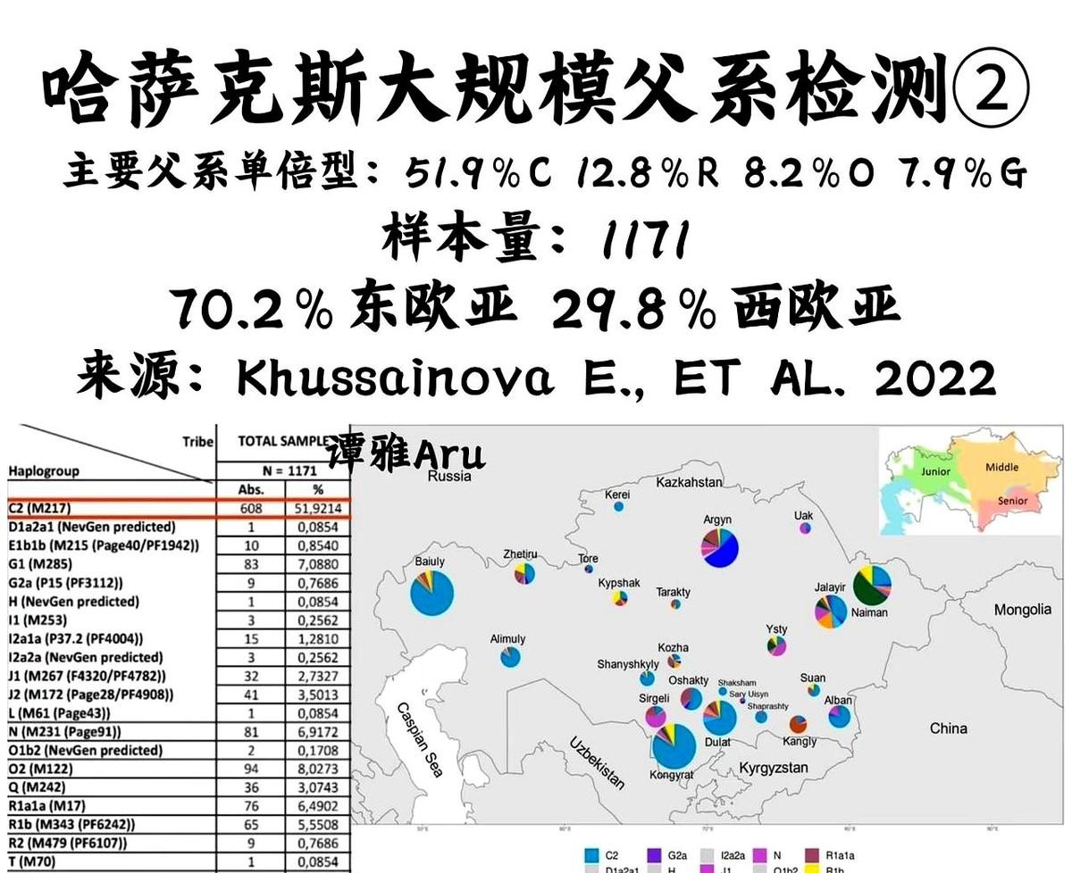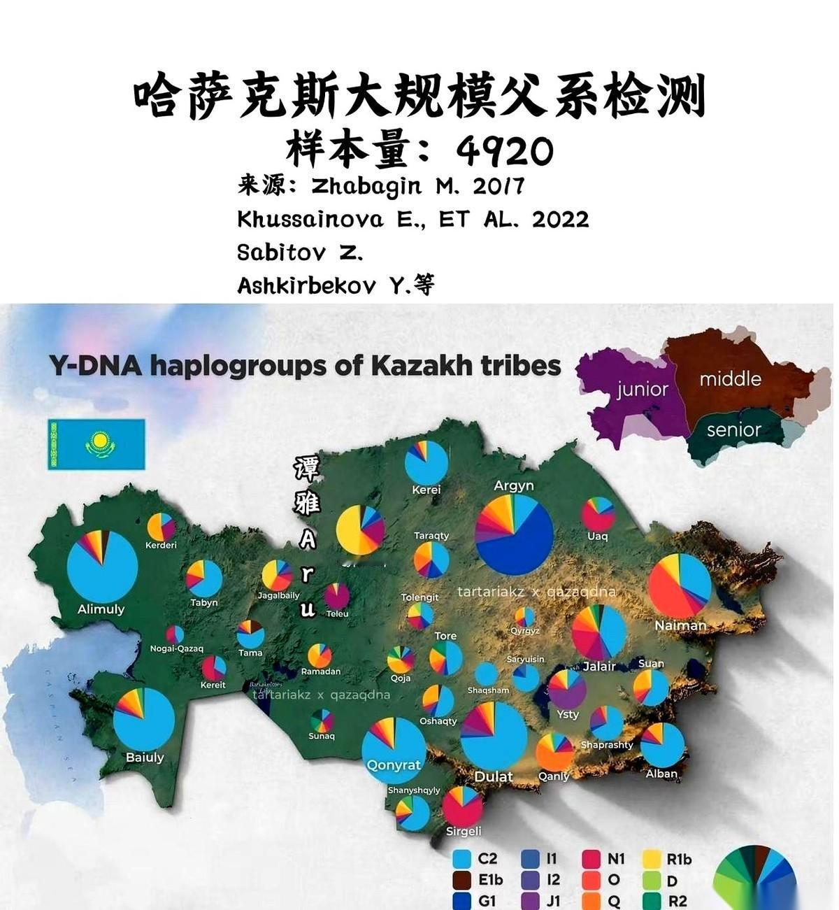 哈萨克斯坦三千汉子基因检测,老祖宗竟来自蒙古高原? 哈萨克斯坦,三千多个老爷们儿凑一块儿去做基因检测,结果一出来,好多人都懵了。你猜怎么着? 大伙儿一直以为自己的老祖宗就是土生土长的中亚人,根就在这片草原上,可检测报告明明白白显示,大部分人的父系基因,都指向了遥远的东边——蒙古高原。这结果,说颠覆三观都算轻的,不少人拿着报告反复确认,就怕是不是实验室给弄错了。 可能有人会说,不就是一次基因检测吗,至于这么吃惊?要知道,在这之前,不管是民间说法还是不少传统认知里,哈萨克族的祖先都被默认为中亚土著,和蒙古高原的关联只停留在零星的贸易往来上。 谁能想到,基因这东西不会骗人,直接把千百年前的迁徙秘密封印在了血脉里。更有意思的是,检测数据里,C2b1a2-M48这种典型的东北亚父系单倍群,在西部哈萨克族里出现的频率特别高,这背后肯定藏着一段不简单的过往。 这事儿得从头捋才清楚。古代的蒙古高原,可不是什么宜居宝地,那地方卷得厉害,生存难度拉满。 本身是温带半干旱气候,雨水少还不稳定,主要地貌不是戈壁就是干旱草地,游牧民族全靠天吃饭,水草好不好直接决定了能不能活下去。 更要命的是,草原上部落林立,匈奴、鲜卑、突厥、回鹘这些部族轮番崛起,为了争夺牧场和水源,打起来那是常有的事,今天你吞并我,明天我攻打你,日子过得提心吊胆。 在这样的大环境下,有一波人实在扛不住了,这就是克烈、乃蛮这些部落。他们不像有些部落那样硬刚,而是琢磨着换个地方谋生,合计来合计去,最终决定集体打包往西走。 别以为迁徙是件容易事,在没有现代交通工具的古代,带着族人、牲畜长途跋涉,路上要避开战乱、寻找水源和草料,稍有不慎就可能全军覆没。他们一路向西,跨过戈壁,越过山脉,不知道走了多少日夜,终于看到了一片新天地——哈萨克草原。 这片草原简直是老天爷赏饭吃,地势平坦开阔,水草丰美,气候也比蒙古高原温和,不管是放牧还是定居,都再合适不过。和常年战乱、资源匮乏的蒙古高原比起来,这里就是人间仙境。 这帮迁徙而来的部落,一看这地方就挪不开脚了,当即决定扎根下来,再也不回东边受那份罪。谁也没想到,他们这一留,不仅改变了自己部落的命运,更在千百年后,通过基因留下了清晰的印记。 接下来,最真实也最直白的“奠基者效应”就悄悄上演了。说白了,就是这几个部落的先祖特别能生,而且子孙后代的存活率也高。 当时迁徙过来的人口不算多,但其中有几个父系祖先,就像蒲公英的种子一样,凭借着草原充足的资源和稳定的环境,后代不断繁衍,慢慢扩散到了草原的各个角落。 基因检测数据显示,像哈萨克中玉兹、小玉兹的不少部落,核心父系基因都能追溯到这几个先祖身上,甚至有些 clans 还呈现出明显的单一起源特征。 更关键的是,这种基因的传承还和当时的部落文化息息相关。古代哈萨克部落以游牧为生,部落凝聚力强,而且父系血缘在部落认同中占据重要地位,这就使得那些强势先祖的基因,能够在代际传递中不断强化,而不是被其他基因稀释。 久而久之,整个哈萨克草原上的族群,就形成了以这些东迁先祖基因为核心的遗传格局,甚至影响到了后来不同玉兹部落的基因差异。 其实不止是克烈、乃蛮部落,历史上蒙古高原的游牧部族,因为生存压力西迁或者南迁的情况并不少见。只是这一次,基因检测把哈萨克斯坦族群和蒙古高原的关联,以最直观的方式呈现在了大家面前。 以前不少人觉得,中亚和东亚的族群关联遥远,可这份基因报告却告诉我们,千百年前,一场跨越千里的迁徙,早已让两地的血脉紧紧相连。 现在回头再看那三千多个老爷们儿的基因检测结果,虽然依旧让人吃惊,但背后的逻辑却清晰明了。一场为了生存的迁徙,一片肥沃的草原,一段漫长的繁衍史,最终让蒙古高原的基因,在哈萨克斯坦的土地上扎下了深根。 不知道你怎么看这件事?你觉得基因检测揭示的迁徙史,有没有颠覆你以往的认知?欢迎在评论区聊聊你的观点。
