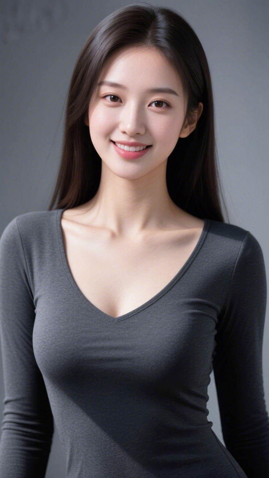 《灰衫伴柔光》 浅灰底色里漫着轻软的光,她立在那里,像把日常的暖意融作一身舒展的素色。 衣装衬着自在的模样,领口轻展的弧度裹着温软的柔,长发轻落时,周遭的静都跟着放柔了节奏。笑意漫开的瞬间,眼底的亮像落了细碎的星,裹着沉静里的平和。 这不是单调的色调,是把生活的舒展藏进衣褶里——抬眸时的柔和,浅笑时的轻缓,都是恰好的松弛,是能让人跟着轻舒一口气的暖。 灰衫轻暖 松弛感日常