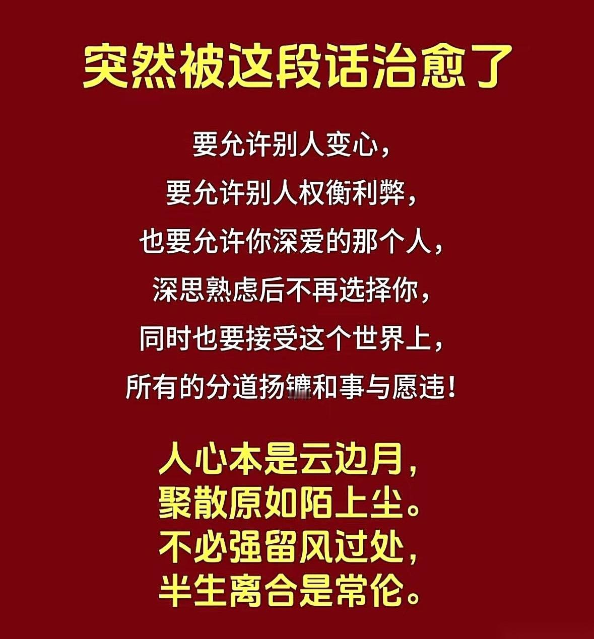 我今天终于把你从置顶取消了。 想了想,那不是放下,更像是一种……祛魅。 你身上那层光,原来是我眼睛里的。 我把我所有好的东西都给了你。 我最好的耐心,最傻的天真,最没由来的信任,还有,我那点可怜又可笑的、自以为是的深情。 这些东西在你身上一裹,好家伙,金光闪闪的,我自己都看呆了。 还以为捡到宝了呢。 现在我累了,不想给了。 把这些东西一件件从你身上扒下来,收回来。 再看你。 哎,说句不好听的,真的就……挺普通的。 所以啊,人千万别回头。 不是说破镜不能重圆,是那个镜子里的你,早被扎得千疮百孔了。 再回去,你是想被再扎一遍吗?