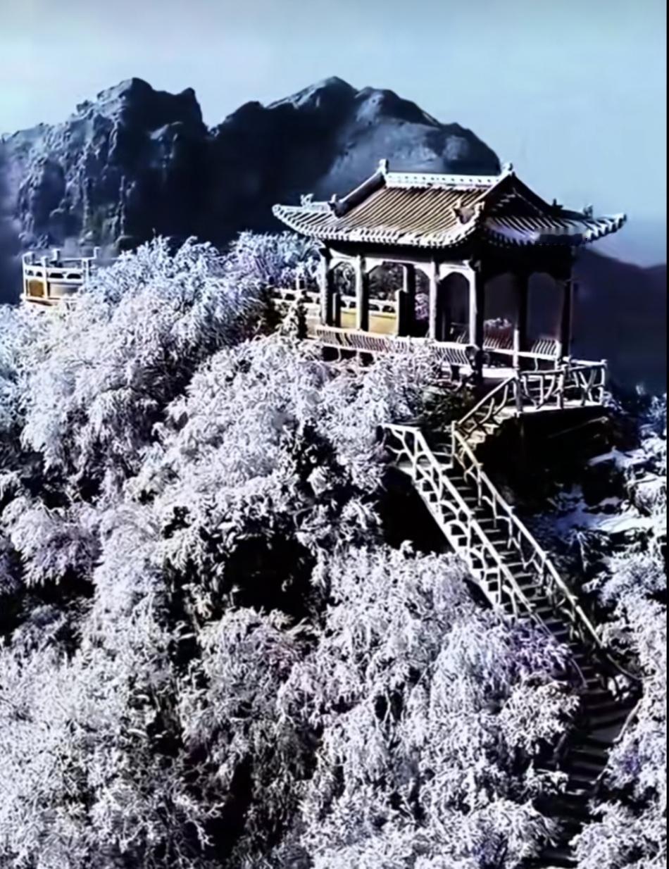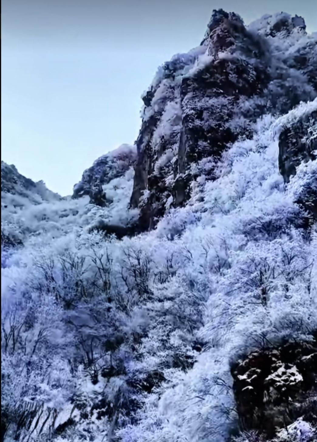 分享你随手拍山西省永济市境内的“五老峰”,雪后呈现出唯美雾淞景观,银装素裹,宛若