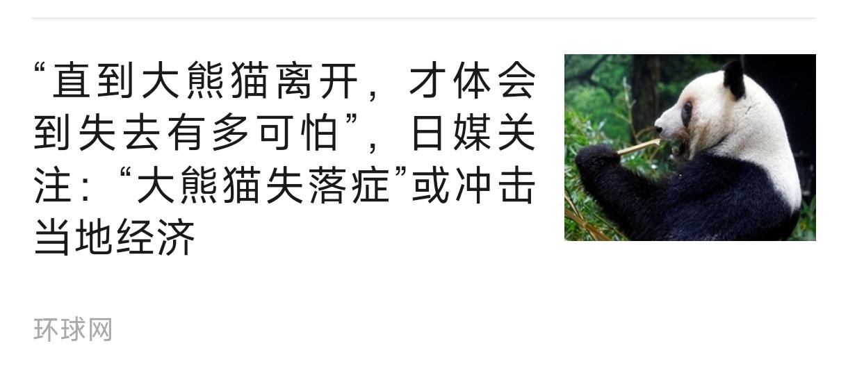 日本经济不行,是系统性问题,现在日本却甩锅中国,中国似乎成了许多国家“万能的锅”。 日媒关注:“大熊猫失落症”或冲击当地经济。注意,日媒可不是独立的,是日本当局“受控”。 而显然,大熊猫在日本创造不了奇迹,倒是日本经济断崖式下降,完全是国家太小,野心太大所致,其工业太多了,是畸形的那种多,都是为了战争做准备的。