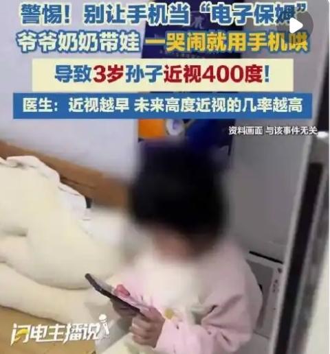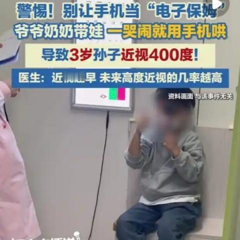 河南3岁娃查出400度近视的新闻,戳中了无数家长的痛点!医生拿着验光单叹气的瞬间,孩子父母当场红了眼——谁能想到,爷爷奶奶“怕孩子哭闹”的疼爱,竟成了伤害孩子视力的“隐形杀手”。一哭就递手机,睡前看动画哄睡,出门用平板打发时间,长期无节制的电子设备使用,让本该拥有300度生理性远视储备的孩子,提前透支了“视力存款” 。 你以为这只是个例?数据不会说谎。国家卫生健康委最新数据显示,全国儿童青少年总体近视率已达52.7%,小学生近视率超35%,而近视发生得越早,发展成高度近视的风险就越高 。重庆爱尔儿童眼科医院院长何勇川直言,低龄近视若不干预,青春期每年可能加深100-150度,未来出现视网膜裂孔、青光眼甚至失明的概率,是普通人的数倍 。3岁400度近视的孩子,若任由发展,成年后大概率会陷入高度近视的困境,一辈子与并发症风险相伴 。 很多爷爷奶奶的逻辑很简单:“孩子哭闹太磨人,手机一拿就安静,既省心又能哄娃”。这份朴素的疼爱里,藏着两代人育儿观念的鸿沟——他们不懂电子屏幕的蓝光会伤害发育中的视网膜,不懂连续盯着屏幕1小时,对幼儿眼睛的伤害相当于成人熬夜3天,更不知道近视一旦发生,便不可逆 。就像这位奶奶在诊室里反复念叨:“我哪知道手机这么害人,只是想让孩子不闹啊”,愧疚又无助的模样,让人心疼又无奈。 但心疼不能掩盖问题的本质:隔代育儿的“懒政”,正在以爱的名义伤害孩子。现在的孩子,户外活动时间越来越少,电子设备却成了“标配”。当我们抱怨孩子离不开手机时,是否想过:是大人懒得陪伴,才让电子产品成了“临时保姆”?是长辈不懂科学育儿,才用最省事的方式应付孩子的需求? 更残酷的是,低龄近视的危害远不止“看不清”。3岁正是眼球发育的关键期,400度近视意味着眼轴已经偏离正常轨道,不仅会导致眼球突出、眼睑松弛,还可能引发飞蚊症、黄斑变性等并发症 。医生强调,儿童近视防控的黄金期只有短短几年,一旦错过,再怎么补救都难逆转 。那些觉得“孩子长大就好了”的家长,其实是在赌孩子的未来。 不是说隔代育儿不好,也不是要苛责爷爷奶奶。只是想提醒所有家长:爱孩子,不能只图当下的省心。与其用手机哄娃,不如多带孩子去户外晒晒太阳;与其让平板陪伴成长,不如陪着孩子读读绘本、玩玩游戏。河南省已启动“小眼镜”防控专项行动,可守护孩子的视力,更需要每个家庭的用心参与 。 你家有隔代育儿的矛盾吗?长辈是否也常用电子产品哄娃?欢迎在评论区分享你的经历和应对方法,让我们一起为孩子的光明未来保驾护航——别让我们的“偷懒”,变成孩子一辈子的遗憾。儿童近视 少儿近视
