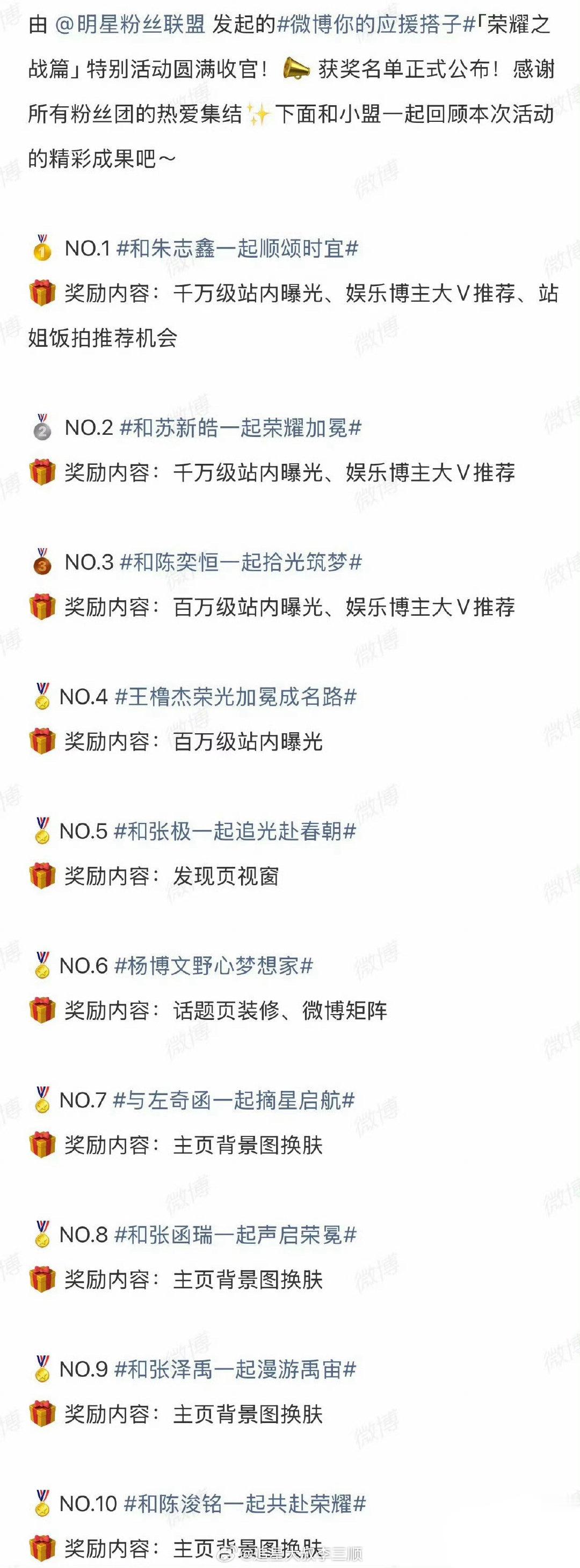 微博应援搭子荣耀之战排名🈶朱志鑫、苏新皓、陈奕恒、王橹杰、张极、杨博文、左奇函、张函瑞、张泽禹、陈浚铭