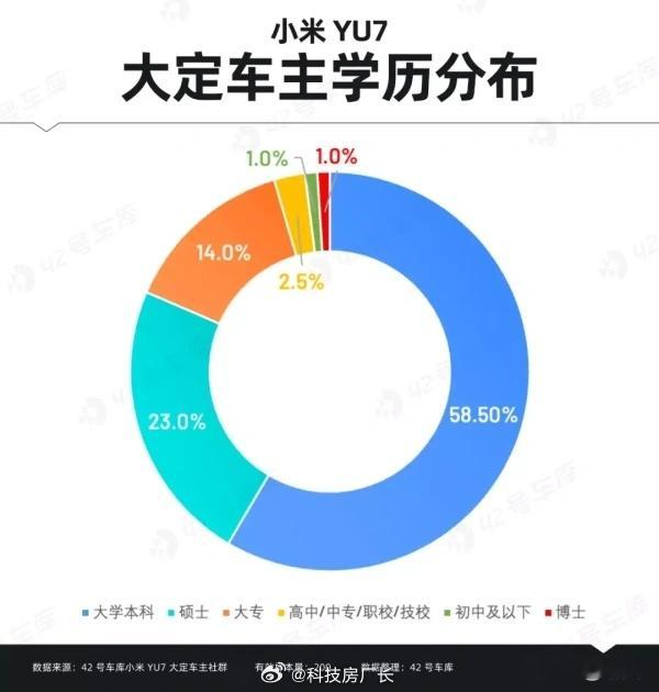 刷到一张小米YU7大定车主学历图,绝大部分都是本科以上学历