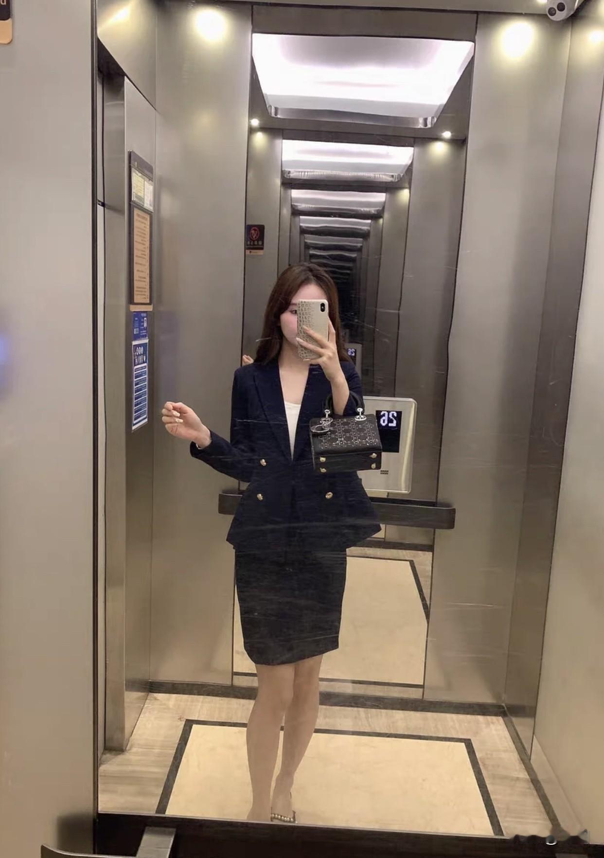 如何搭配一套优雅的职业装?半身裙也是不错选择,长度到膝盖左右为宜。
