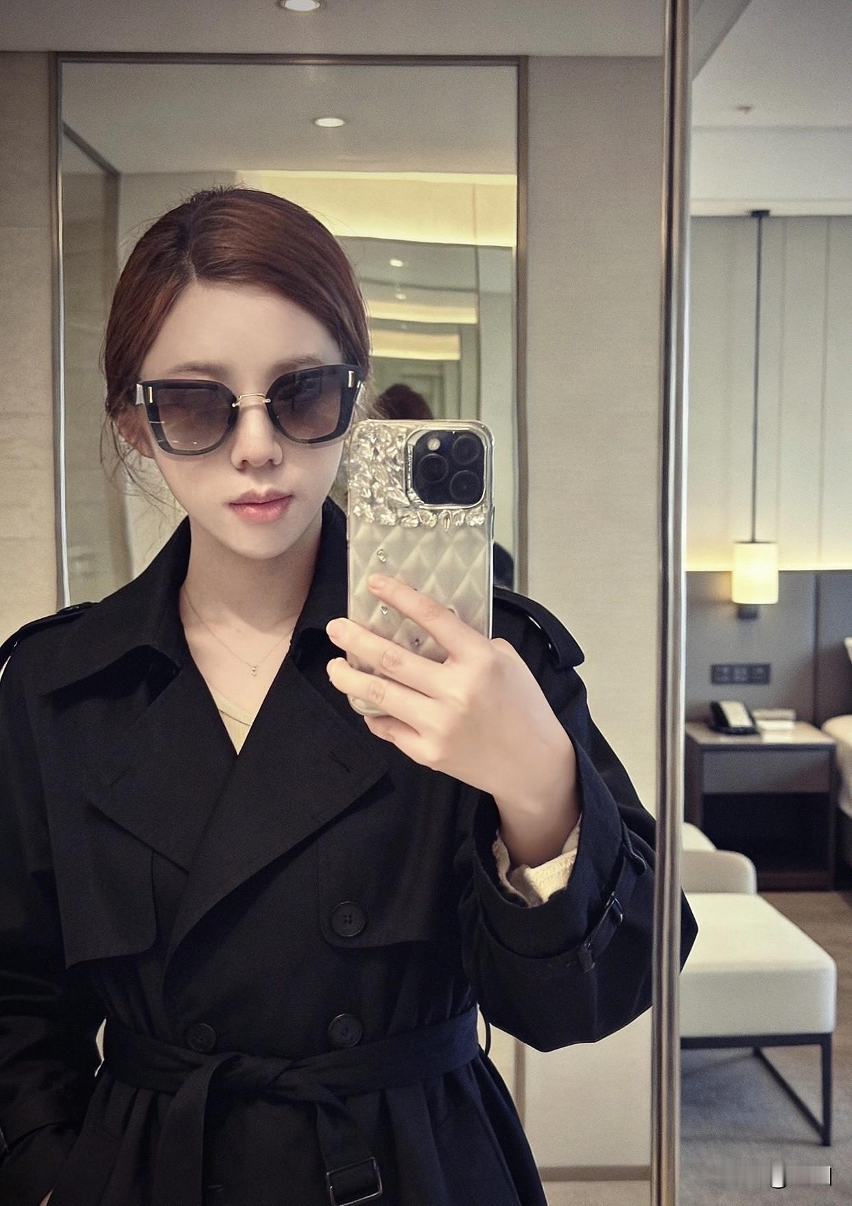 爱拍照的女生到底有多迷人呢?都市雅痞风黑色风衣搭配墨镜,尽显时尚与神秘感!🕶