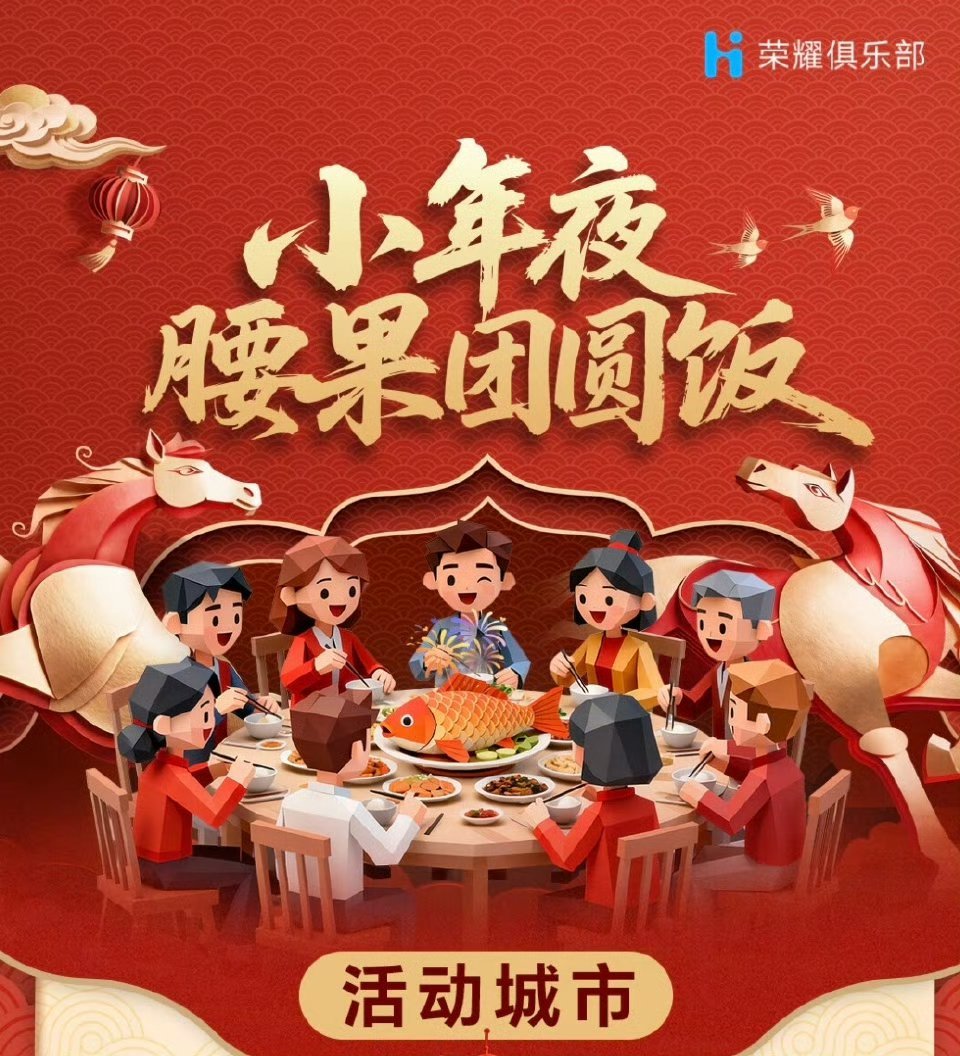 荣耀今年居然搞了个小年夜腰果团圆饭!不错。不过看了几遍,没有咱湖北武汉能加几城吗?
