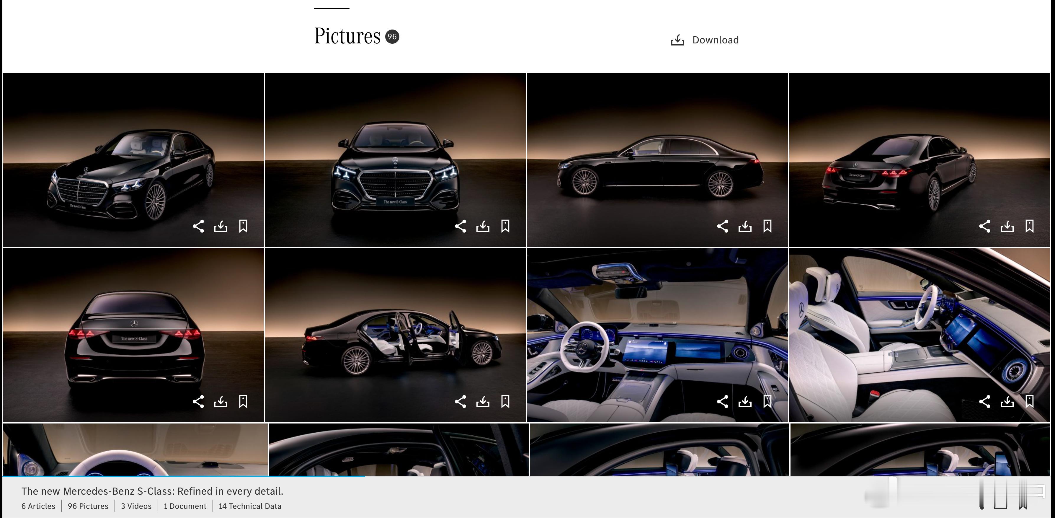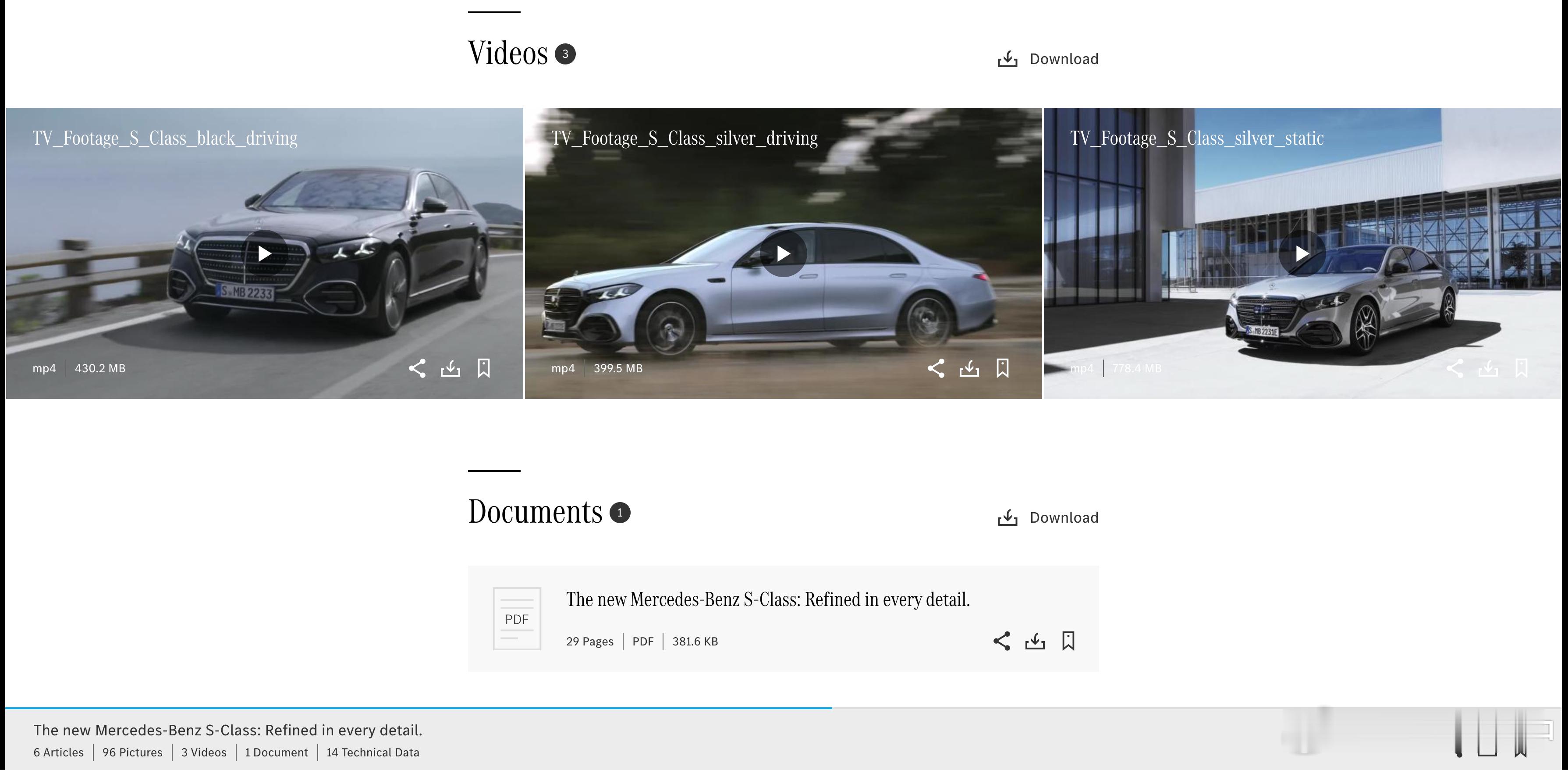 奔驰每次发新车或者发新闻最爽的一点是,哪怕没有参加奔驰的活动,在奔驰的媒体中心也可以拿到最全的信息,包括详细的文档、官图、官方视频,这个维护的真的非常好。