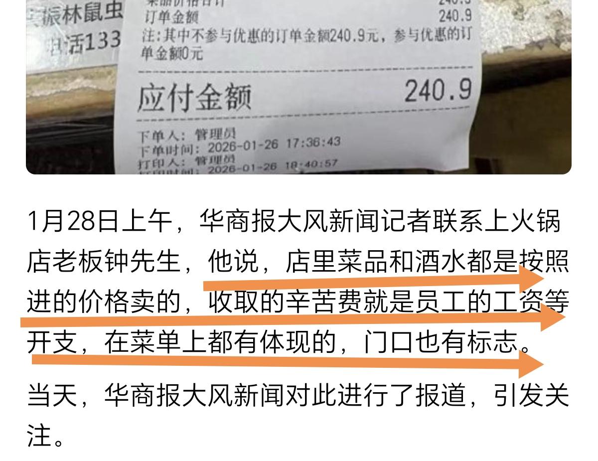 吃火锅,每人收20元辛苦费?看这家火锅店的菜价,还是挺实惠的。或许店里是想通过降低菜价,收取“辛苦费”(小费)的形式来“创新经营”吧。如同这家店负责人解释的那样。 虽然说,这也是一种经营模式,但是这种小费文化,确实也有把本该店里支出的人工成本,转嫁给消费者的嫌疑。至少消费者会这么认为! 这种流行于欧美国家的餐饮小费文化,与中国的餐饮消费文化是格格不入的。收取辛苦费(小费)的形式,对于中国消费者来说,肯定是不能接受的。所以,这种收费经营模式,并不实用,反而会引起顾客的反感。 餐饮商家在制定单份菜品价格,以及制定收费模式的时候,也是要充分考虑顾客的体验感的。有时候不妥当的经营模式,欠缺考虑的“创新”,反而容易降低顾客用餐的体验感。 来源:九派快讯