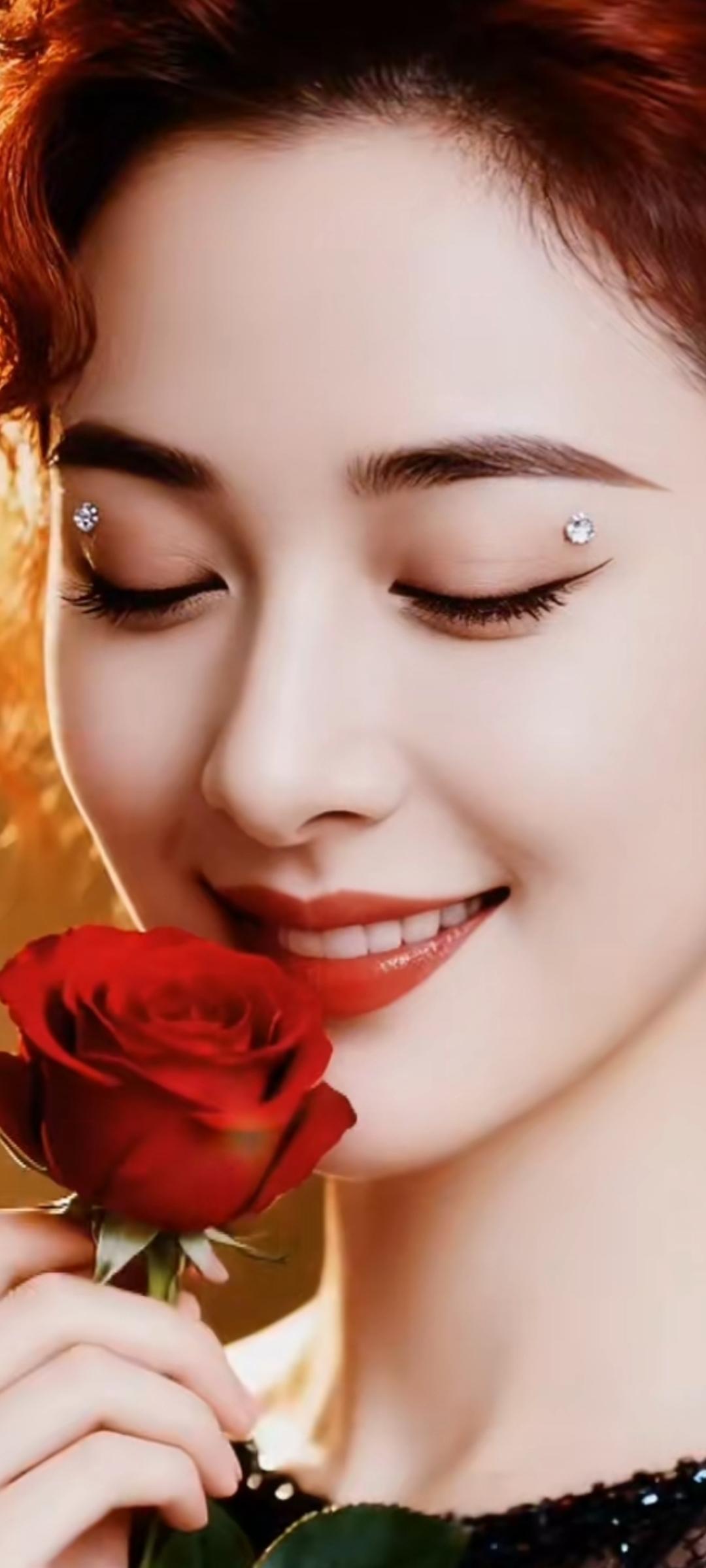 红玫瑰与甜美笑容,绽放你的魅力!🌹😊
