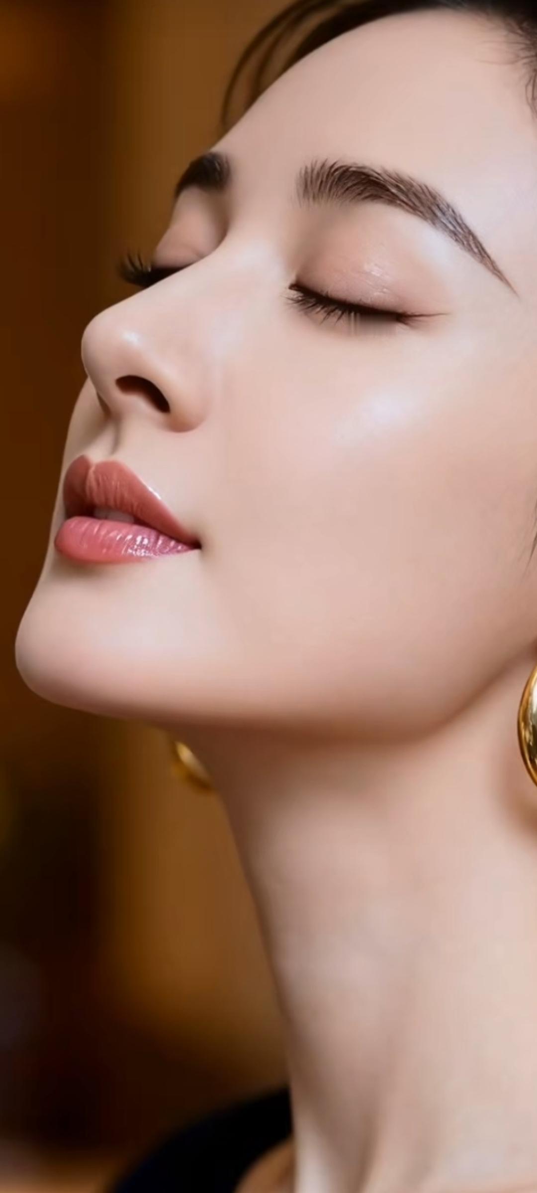 优雅沉静的闭眼瞬间,金环耳环点缀,散发迷人魅力。
