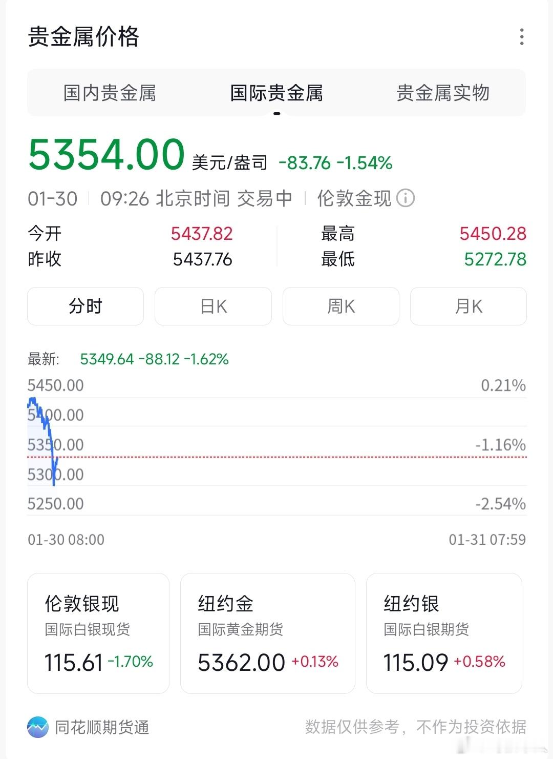 黄金暴跌 今天很多家品牌金饰克价大幅回调!今日金价现货黄金快速回落,现报5354.53美金,一天不到跌了0.31%,昨天最高已经到5600美元。国内黄金饰品价格对比显示,很多家黄金珠宝品牌今天公布的境内足金首饰价格大幅回调,周生生报价1662元/克,周大福报价1685元/克,老凤祥报价1620元/克,老庙黄金报价1668元/克。黄金跳水可以上车了吗黄金跳水黄金首饰
