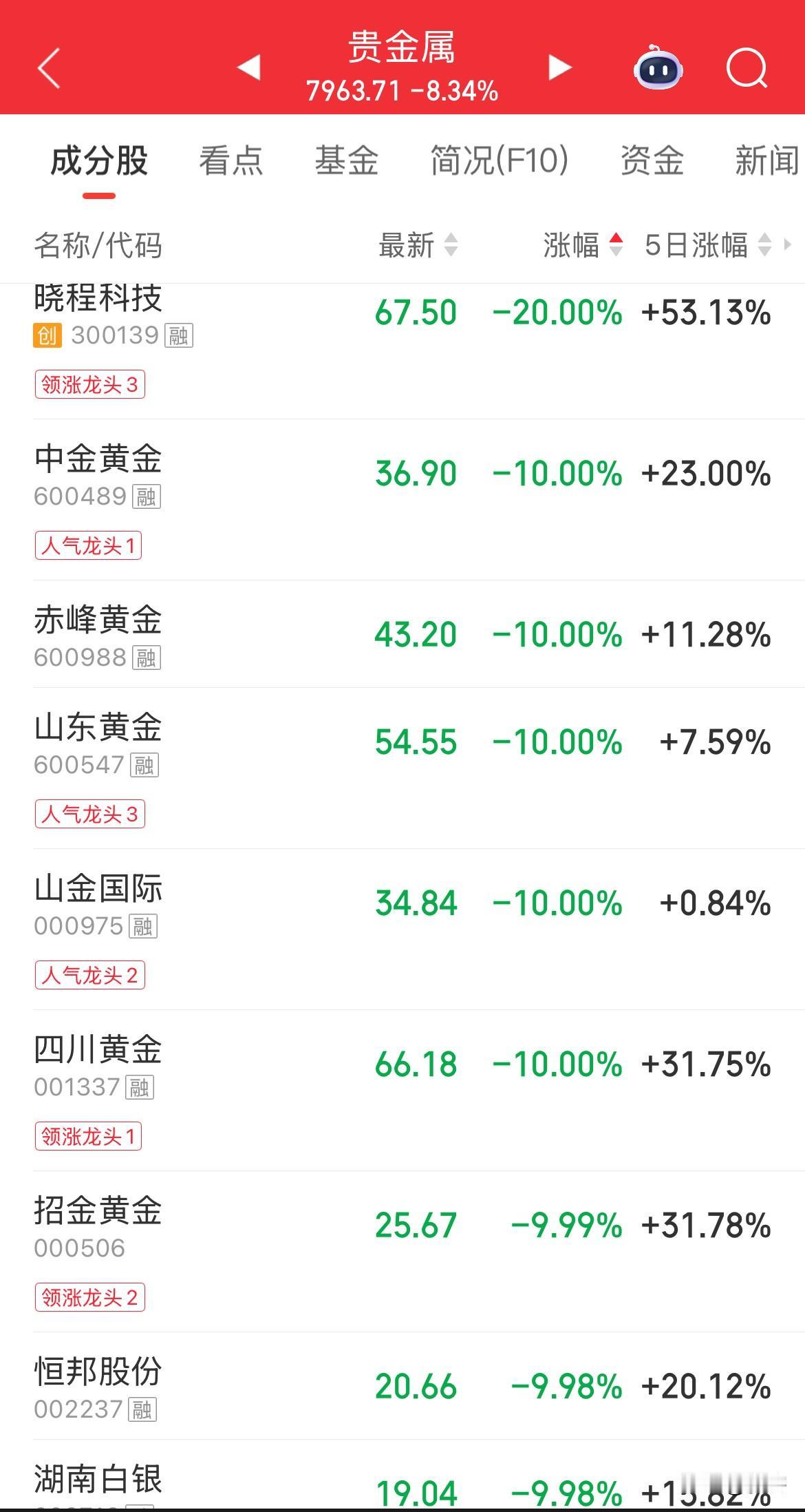 前一天集体涨停,后一天集体跌停,这就是疯狂炒作板块和个股的常态。大盘倒是不“大涨大跌”了,可是热门板块和主力主观意识板块却上蹿下跳起来了,昨天是白酒,今天是贵金属。