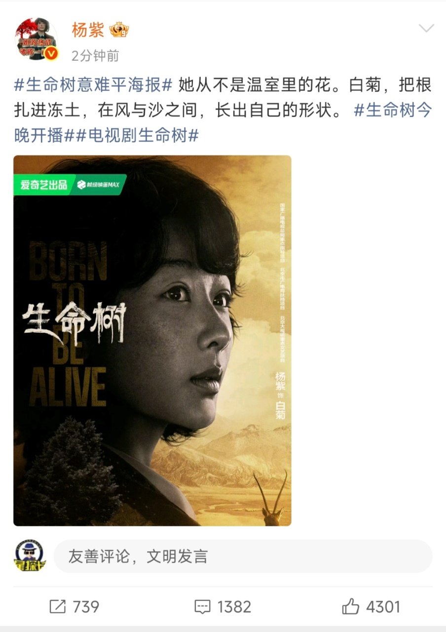 杨紫杨紫发生命树开播长文杨紫欢迎你们来到我的家乡杨紫我们今晚见!!