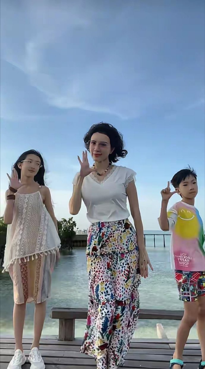 50岁金巧巧和儿女一起跳手势舞!她身材苗条,颜值太抗打了
