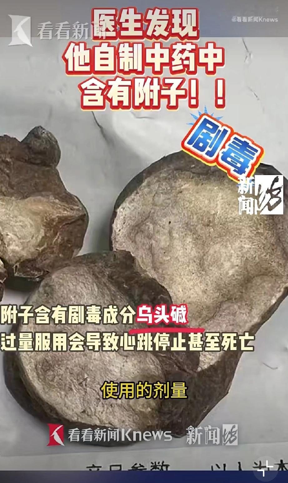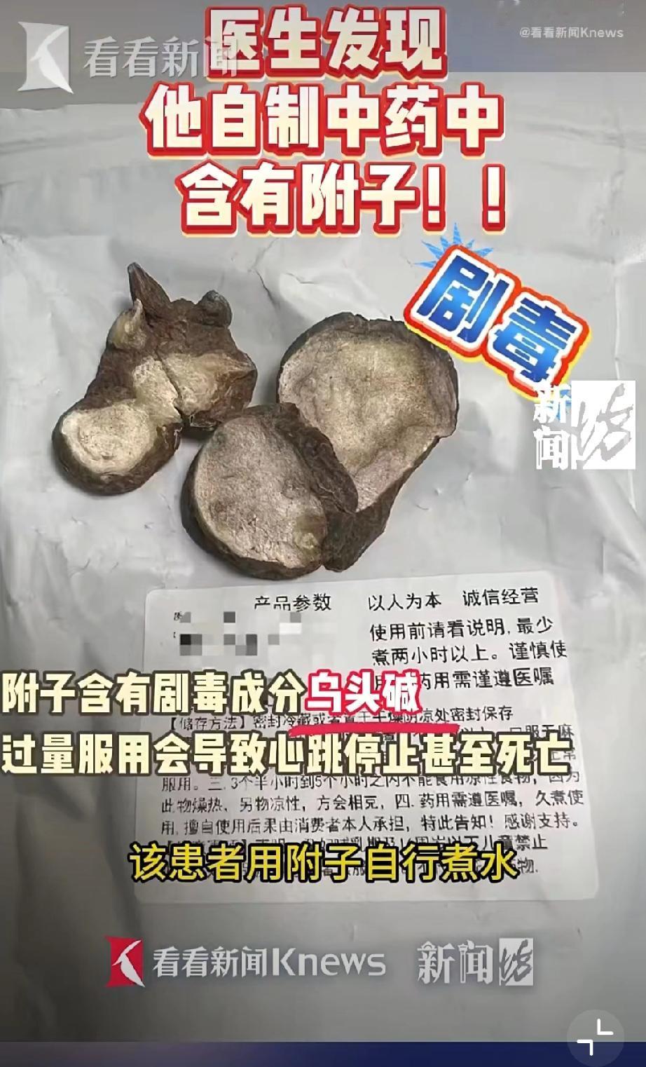男子喝自制中药中毒身亡。 把锅扣中药身上不妥。跟“中药”没关系,跟“自制”也没关系,是饮用自行冲泡的网购“四川江油附片”(附子,剧毒,有乌头碱成分)身亡,这完全是如今直播间乱象导致的。直播间先是一通乱说,然后商家用“初级农产品”规避药品监管,外包装未标注剧毒风险,平台甄别也没到位,建议家属要起诉双方。附子煎煮 附子煎煮方法 草乌附子中毒