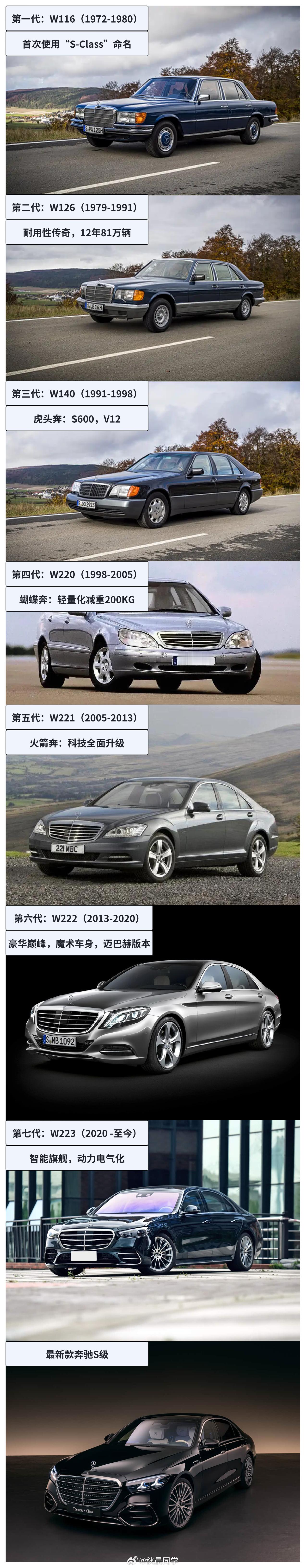 历代奔驰S级一览,你最喜欢哪一代?我个人最喜欢“虎头奔”的版本,因为从港片就开始看到它了(英雄本色等等)