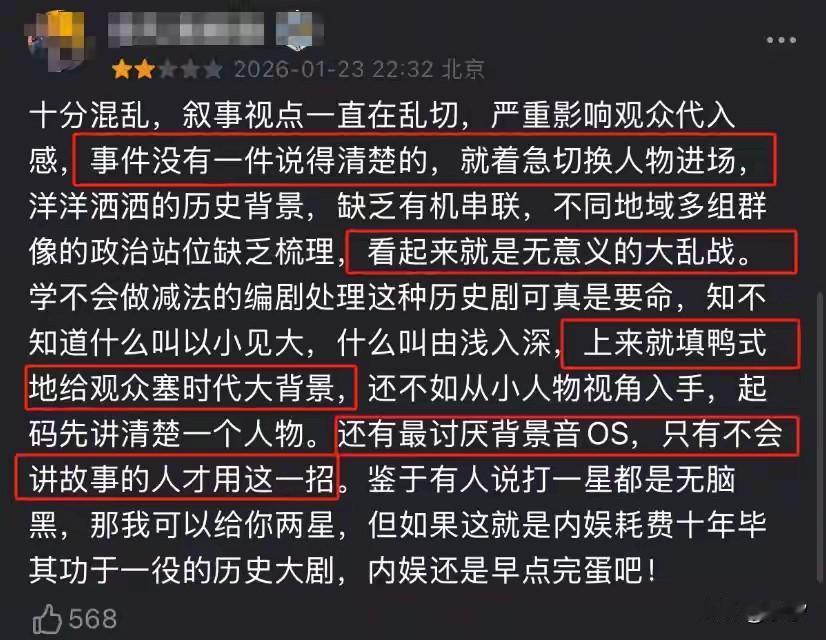 太平年刚一播出,恶心的一幕就出现了!网上到处充斥着唱衰的节奏, 说这几亿的投资又要打水漂了, 一手好牌打的稀碎, 还特别认真的分析了三个原因, 第一,开场主线太多,多线齐发无缓冲!说后晋这条线和钱塘这条线同步推进,从赵匡胤奉命传召介入朝堂, 刚看的入迷,突然又切到了钱塘乱局! 京都大火钱元瓘去世,胡进思专权! 一下甩出了30个人物, 直接让大脑宕机! 说这种话的人一看就是没文化, 自己还不去学历史, 觉得人家演的太复杂了, 实际上的5代10国比这混乱多了! 第二点,信息量太大,让人看的眼花缭乱!尤其是里面的人物一大堆, 官职一大堆,还非常的拗口, 很多官职都是第一次听说, 突然让一些观众觉得自己是文盲, 看了那么多年的历史剧, 他们熟悉的职位没几个! 人家是历史大剧, 不按照历史上的官位怎么行? 非要按照你熟悉的那一点知识, 那还有什么看头? 说这些话的人简直在搞笑, 还是那句话,没文化,多读书去吧! 第三点,5代10国历史盲区, 多数观众摸不着头脑! 这一点在我看来就是优点, 摸不着头脑就对了, 上学时候的历史课本对5代10国的历史两笔带过,那是因为怕吓着你, 历史上的5代10国人相食之, 平均几年就换一个朝代, 大臣上朝如履薄冰, 武将不断篡位, 可以说是道德崩塌,人心思变, 所以短短72年,经历了5个朝代, 怕看不懂就要仔细看了, 这才是历史剧的意义, 劝退了那些喜欢看情情爱爱,无脑短剧的,反倒是这种剧的功劳, 毕竟喜欢饭圈文化的人确实看不懂! 只知道一顿唱衰, 还有一些更离谱的女性观众, 人家播一集就举报一集, 理由简直逆天不尊重女性! 说这些话的人都 查查历史, 古代王朝历史还真的不是女性说了算, 只不过和平太久了, 以现代人的眼光去看古代历史, 总透露着那么傻傻的无知, 脑残古偶剧,爱情剧看多了, 总是以女频的思想了解历史, 这想法未免过于可笑了, 相信太平年会真的火出圈, 真正有学识有文化的观众不会被那些娱乐号带偏, 也不要用那些全剧只有男女主的古装剧去指导太平年, 否则你真的会看不懂! 还是那句话文化盲区, 那就去多补补历史, 这就是历史证据存在的意义, 不管你爱看不看, 去举报它就不对了! 奉劝那些饭圈文化打拳的好自为之!