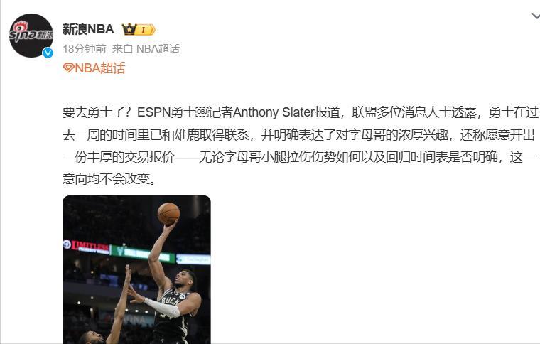 决定了!梭哈字母哥!勇士正式电话通知雄鹿,苏群:需要4个首轮 根据ESPN记者Slater的消息,勇士方面已经明确告知雄鹿,他们做好了“梭哈”的准备。这里的“梭哈”不是一句空话,而是实打实的资产清单。 勇士的态度很坚决,不管字母哥现在小腿伤势怎么样,也不管他需要休息多久才能复出,只要雄鹿肯放人,勇士的报价单就不会撤回。 字母哥今年31岁,正处在一个职业篮球运动员最黄金的年龄,但他不想在无法争冠的环境里继续消耗自己的巅峰期。 虽然双方对外说是“和平分手”,但明眼人都看得出来,字母哥想走的心思已经定下了。即便在截止日前没有谈成,到了休赛期他大概率也会离队。 对于雄鹿来说,现在的问题不是留不留得住,而是能在他是谁身上换回多少重建的资本。 在这个节骨眼上,勇士拿出的筹码刚好击中了雄鹿的痛点。 据了解,勇士愿意送出2026年、2028年、2030年以及2032年的四个首轮选秀权。 国内评论员苏群在分析这笔潜在交易时也提到,想要撬动字母哥这个级别的球星,四个首轮签是谈判的起步价。 放眼现在的NBA全联盟,能一口气拿出这么多首轮签,并且还能保证签位质量的球队,一只手都能数得过来。 对于雄鹿而言,勇士未来的选秀权非常有吸引力,因为等到2030年左右,库里肯定已经退役,那时候勇士的战绩充满了不确定性,这些选秀权变成高顺位签的概率非常大。 除了选秀权,勇士在球员匹配上也展现了灵活性。 巴特勒虽然赛季报销,但他身上背着一份2年1.11亿美元的合同,这份合同将在2027年夏天到期。 对于雄鹿这种急需清理薪资空间或者进行二次运作的球队来说,巴特勒的到期合同是一个非常优质的配平工具。 勇士不仅能提供这份合同,还能打包像库明加、波杰姆斯基、穆迪这些年轻的即战力。这种“老将到期合同+潜力新星+大量选秀权”的组合,几乎满足了雄鹿重建所需要的一切要素。 这就体现出了勇士相对于其他竞争者的优势。虽然热火、尼克斯和森林狼也对字母哥虎视眈眈,但他们的操作难度要大得多。 热火和尼克斯同处东部,雄鹿从本能上就排斥把当家球星送到隔壁,因为谁也不想在季后赛里被自己亲手送出去的人淘汰。 如果要和这些东部球队交易,雄鹿往往要求对方拉入第三方球队来平衡利益,这会让谈判过程变得异常繁琐,时间成本极高。 相比之下,把字母哥送到西部的勇士,既避免了东部内部的直接竞争,又能直接进行一对一的交易,流程上要顺畅得多。 对于勇士自己来说,这也是一次为了未来十年的豪赌。 库里今年38岁,依然保持着极高的竞技水平,但他职业生涯的窗口期客观上只剩下最后两年左右。 如果现在引进字母哥,勇士马上就能重回争冠行列,在库里退役前的这段时间里,球队拥有全联盟最恐怖的内外线组合。 而等到库里真正退役的那一天,字母哥正好接过领袖的大旗,勇士可以围绕他继续搭建阵容,确保持续的竞争力。 管理层看得非常清楚只要拿下字母哥,球队面临的阵容老化、接班人断档这些问题,都会迎刃而解。 现在雄鹿手里握着主动权,他们在评估各家的报价,试图榨干字母哥身上最后的交易价值。勇士则是摆出了一副势在必得的架势,把所有的筹码都推到了桌子中间。 距离交易截止的大门关闭只剩最后一点时间,勇士老板拉科布和总经理邓利维正在等待密尔沃基那边的最终回复。 这笔交易如果达成,不仅会改变两支球队的命运,甚至会直接改写整个NBA未来几年的版图。 大家觉得如果勇士真的用了四个首轮换来字母哥,库里还能再拿一个冠军吗?欢迎到评论区讨论
