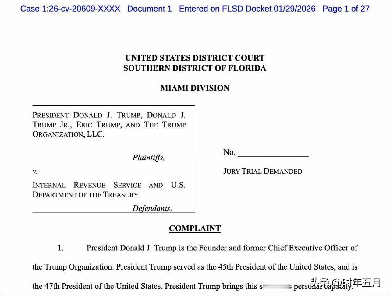 总统起诉自己的政府索赔100亿,也算是川普的伟大发明。 特朗普正起诉国税局,指控其泄露了他的纳税申报表。 这起起诉使特朗普、他的儿子埃里克和小唐纳德以及特朗普集团与财政部对簿公堂,并要求赔偿100亿美元。
